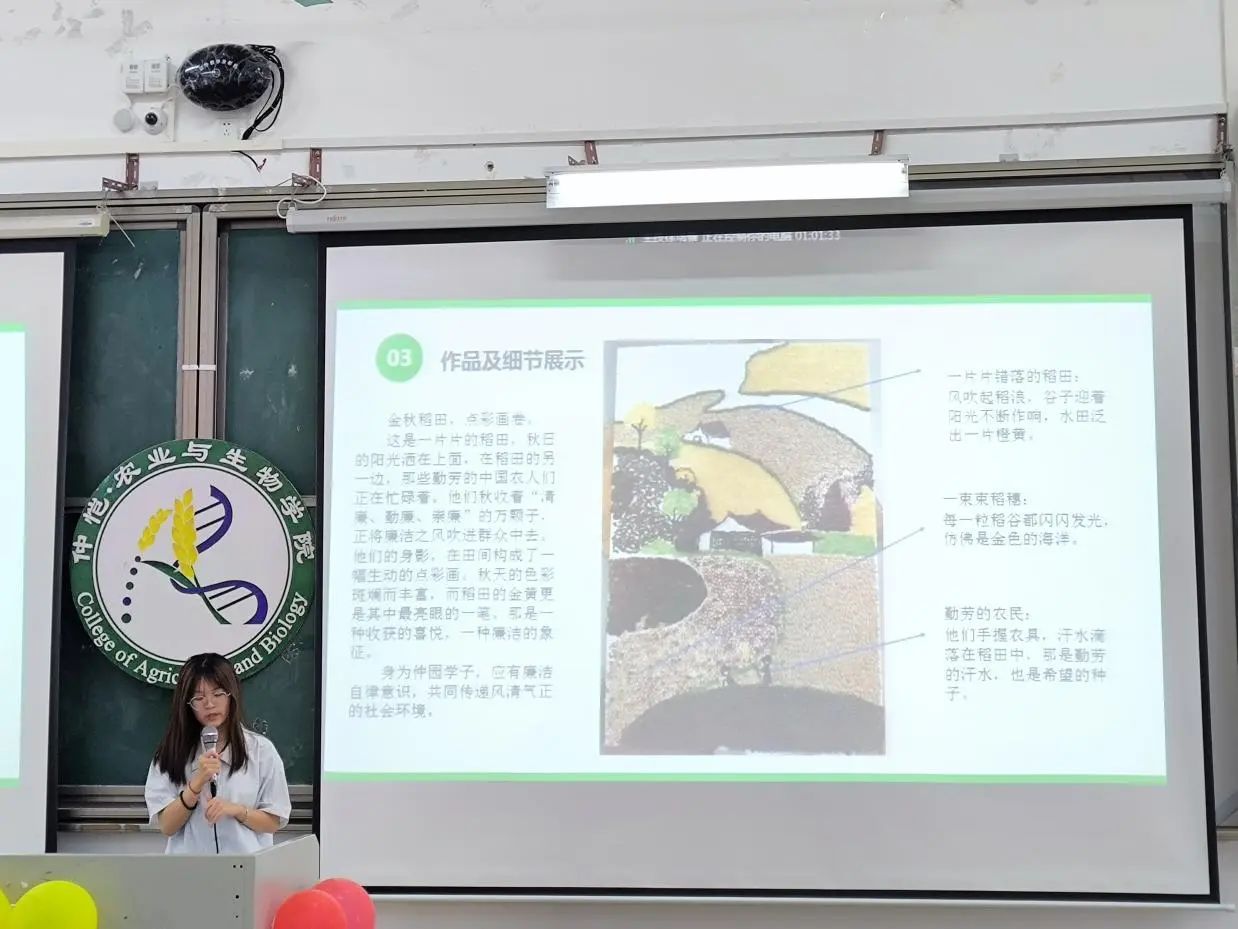 此次比赛不仅丰富了同学们对作物种子颜色、形状的认识,也加强公司师生对廉洁的理解与认识,提升了各自的动手能力和合作创新能力。本次比赛为全校师生了解best365官网入口注册提供了一个良好的桥梁。通过此次比赛,希望同学们能够借助种子画来表达对清廉的支持和祖国的热爱,展望未来美好生活。