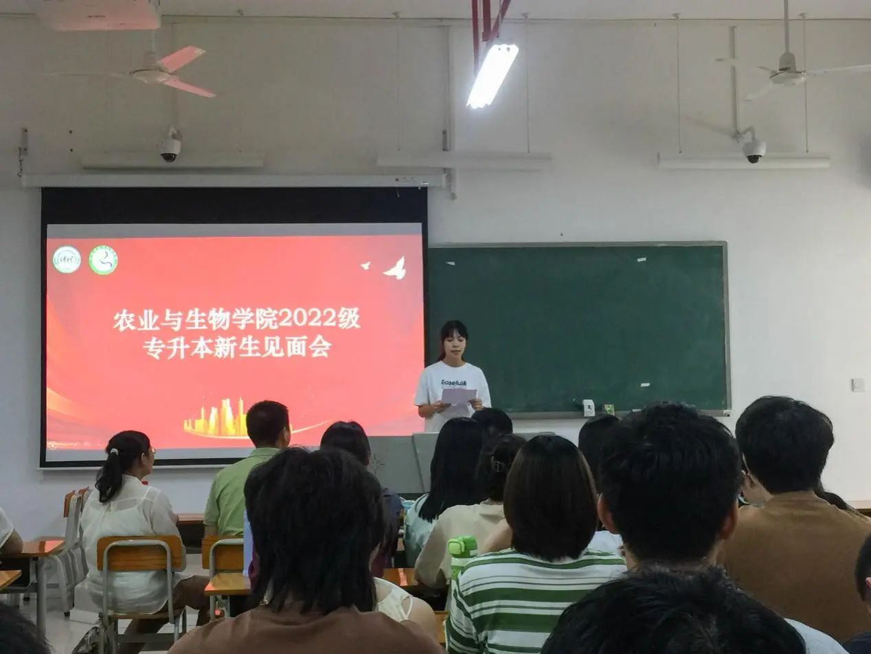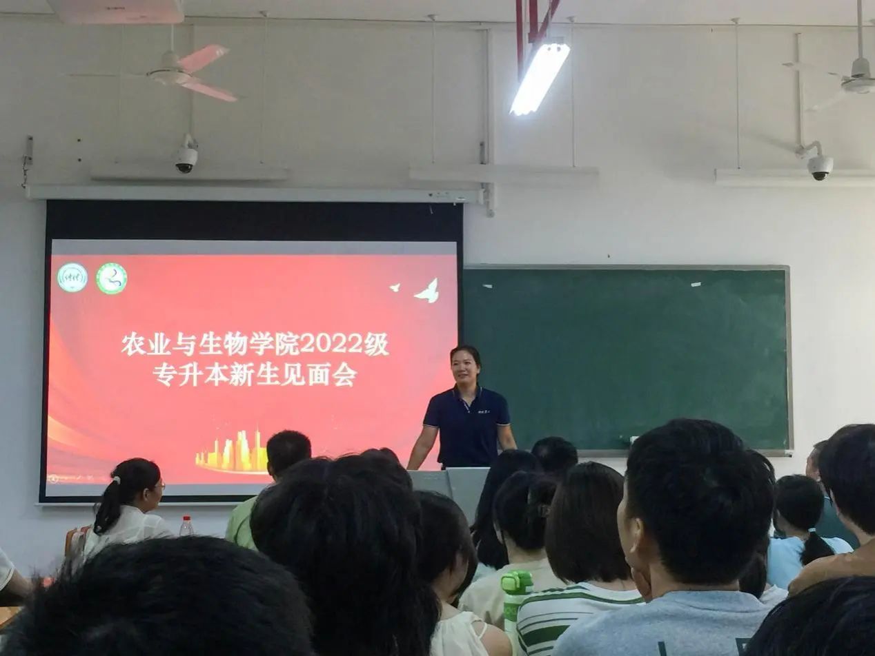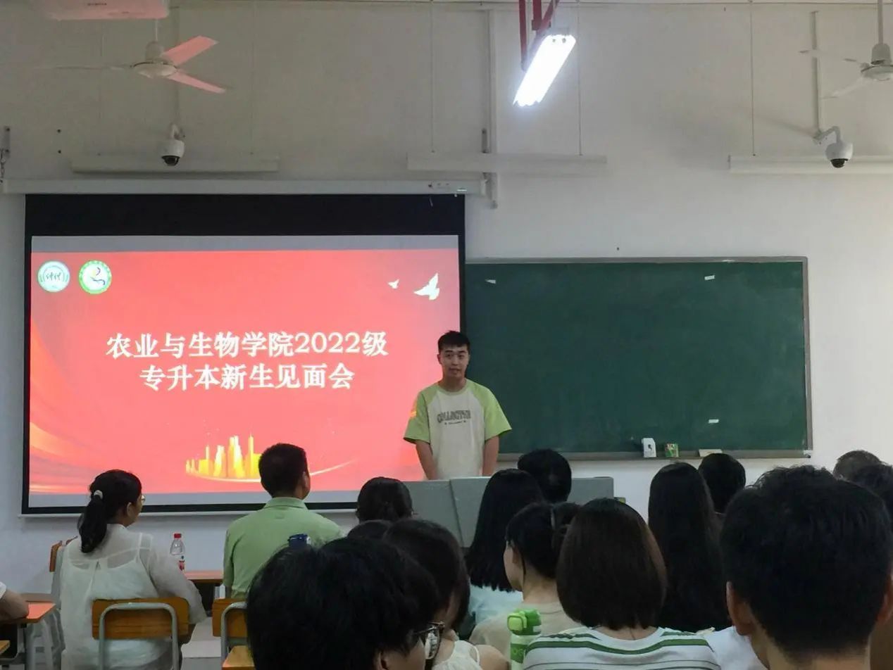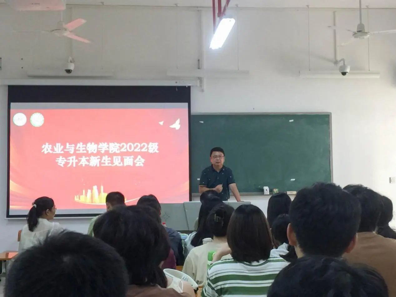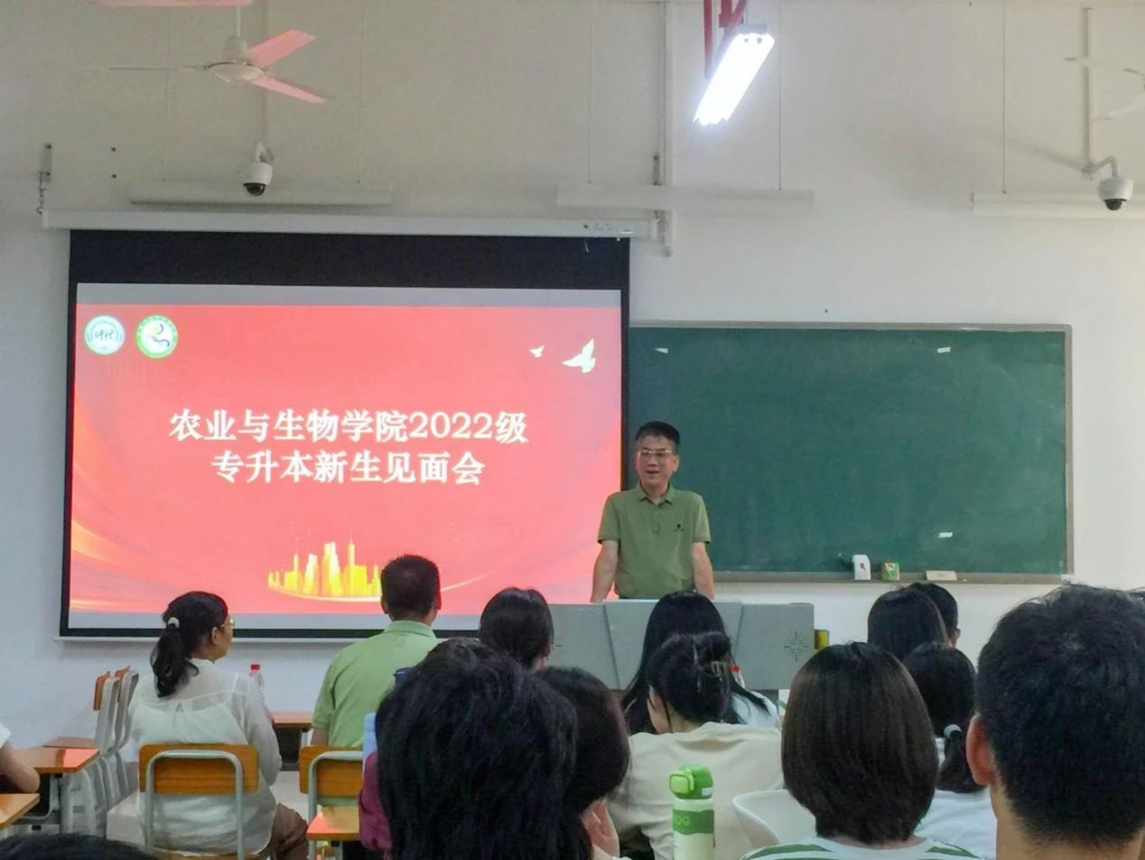 最后,周超雄书记进行了会议总结发言。周超雄书记希望新生珍惜这来之不易的学习机会,再次对专升本同学的到来表示衷心的祝贺。同时,他叮嘱同学们在学习生活方面不要有太大的压力,要学会调整心态,以轻松愉悦的心情面对各种挑战。他希望同学们能通过参加社团活动、拓展人际交往,不断提升自己的沟通能力。他指出,同学们要学会悦纳自己,全面提升自身素质,无论是在学术上还是在个人成长方面都能取得长足的进步;要提升集体荣誉感,积极融入到集体当中,感受团队的力量和温暖。周超雄书记嘱咐道:“同学们要好好学习、好好生活,培养各种兴趣爱好,让自己的老员工活丰富多彩。”他还希望同学们能够继续秉承优良学风,发挥榜样的力量,带动农生院其他同学一起营造良好的学习氛围,共同为公司的发展添砖加瓦。