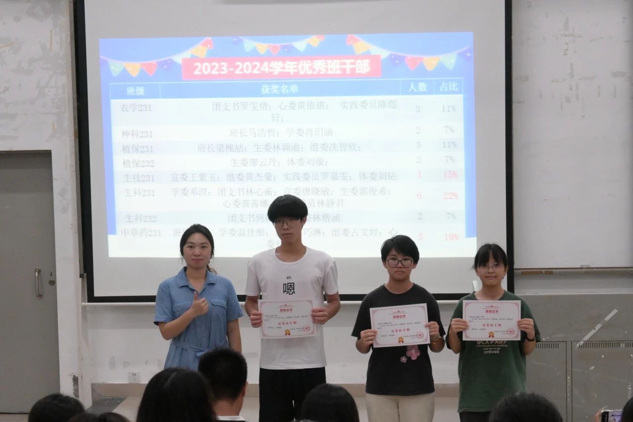 会上,对上一学年的优秀班干进行了表彰,由助班为获奖员工颁奖。邝老师对全体班干部过去一年的辛勤付出表示了衷心的感谢,充分肯定了班干部们的日常工作表现,希望新一任的班干部再接再厉,继续发扬良好的工作作风和精神品质,充分发挥在班级中的模范带头作用,争当年级好榜样。