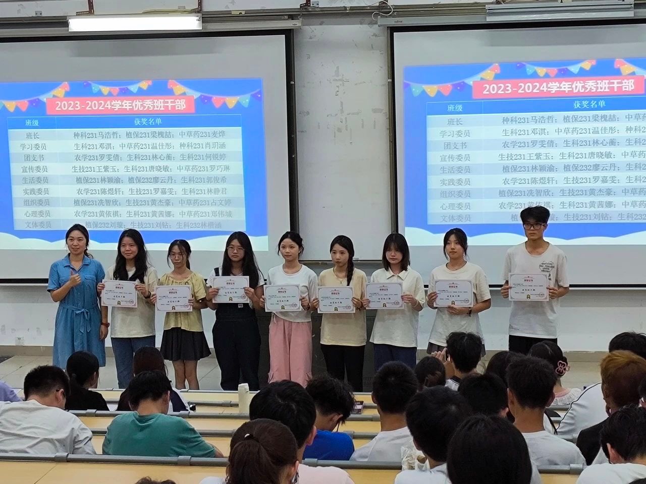 在秋高气爽、金风送爽的美好时节,best365官网入口注册于9月20日晚在白云校区综合楼D2小礼堂召开了2023级年级暨优秀班干表彰大会。此次大会旨在回顾同学们大一学年在专业学习、竞赛活动、社会实践及班级建设等方面的成绩,表彰在各项工作中表现突出的优秀班干部,进一步激发同学们的积极性和创造力,为公司未来的发展注入新的活力。23级班主任、助班及23级全体同学参加会议,由辅导员邝健睿主持。