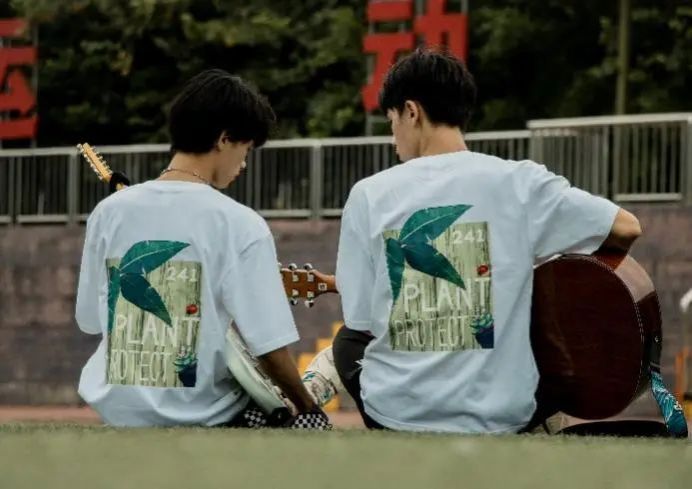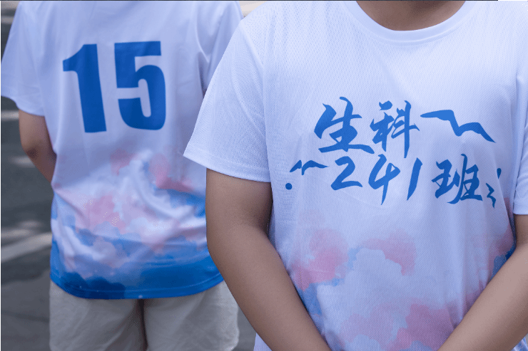 农学241的班服以白色为主基调,白色代指天空,有天高任鸟飞之意。
