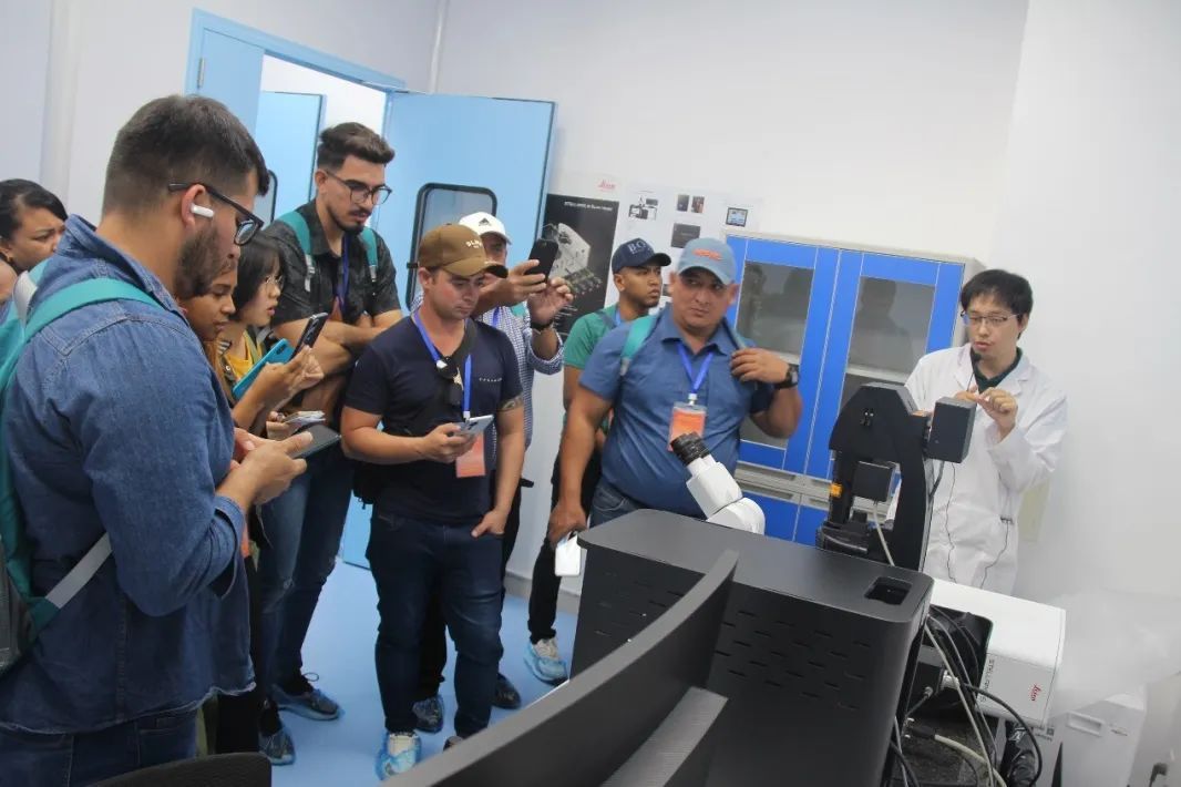 学员抵达公司后,先由秦迪博士带领参观了农业农村部华南果蔬绿色防控重点实验室,了解实验室各类科研设备的运行情况。实验室自2023年12月揭牌以来,激光共聚焦显微镜、场发射扫描电子显微镜、微滴式数字PCR系统设备等一批高端原创科技平台已启动使用,实验室高质量发展的格局已初步形成。