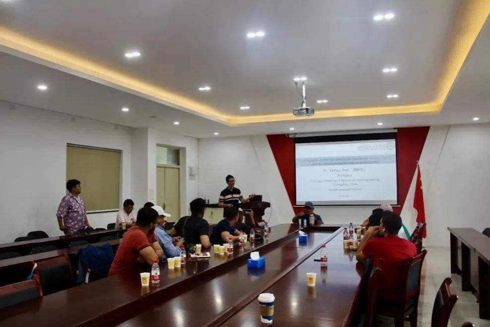 陈铧耀副教授随后对学员进行了纳米农药缓释载体及构效关系研发的培训, 从农业上对纳米载体改性及构效机制研究进行介绍,并与学员就农化投入品和食品加工技术研发及工艺改进进行了交流。