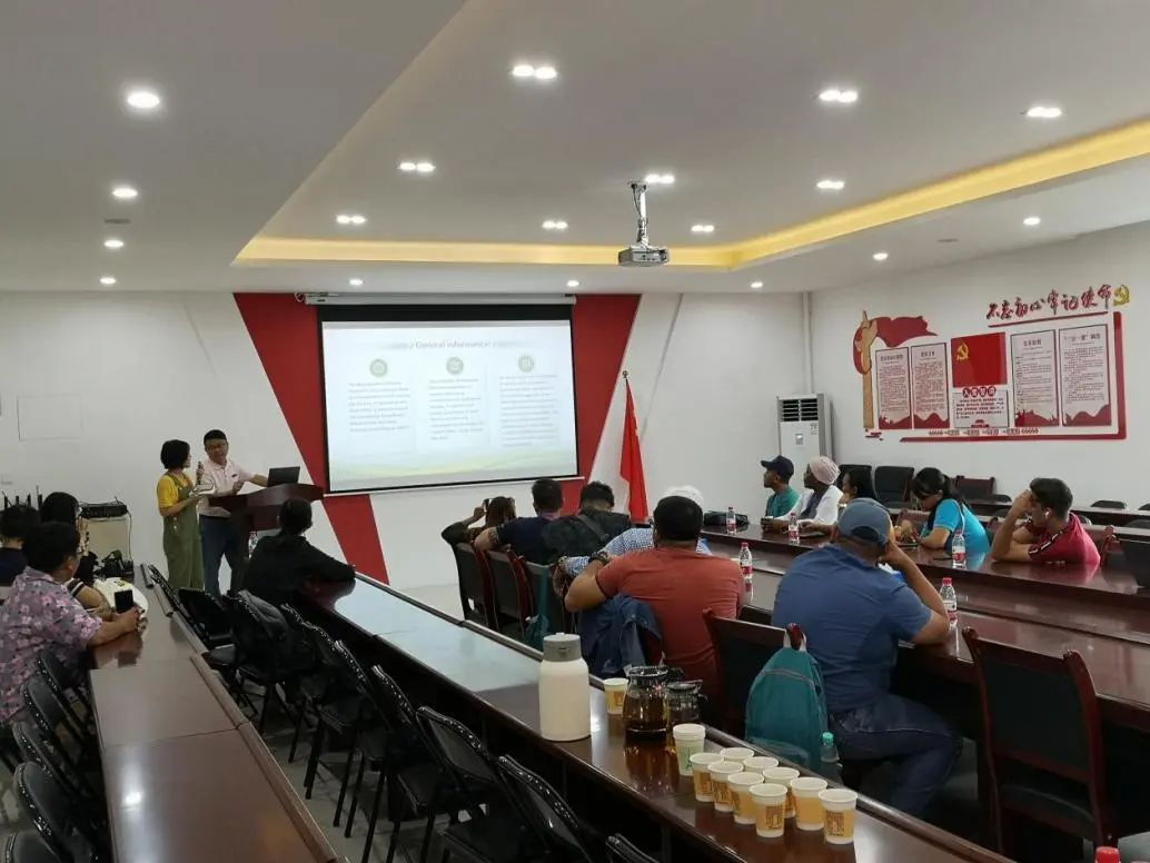 随后,在生命科学大楼A607会议室,喻国辉研究员向参训人员详细介绍了公司的发展历史及办学理念,并重点介绍了重点实验室的建设和运行情况、研发任务和目标、研发团队和成果、以及未来的研究展望,并分享了公司在对外科技援助所做的工作和成效。在介绍重点实验室联合开发的3款生物防治产品:芽胞杆菌制剂“第一细”和“鼎微”以及植物免疫调控制剂“光合高脂膜”时,学员表现出浓厚的兴趣,来自巴拿马和南非的学员详细了解了产品的性能和应用范围。