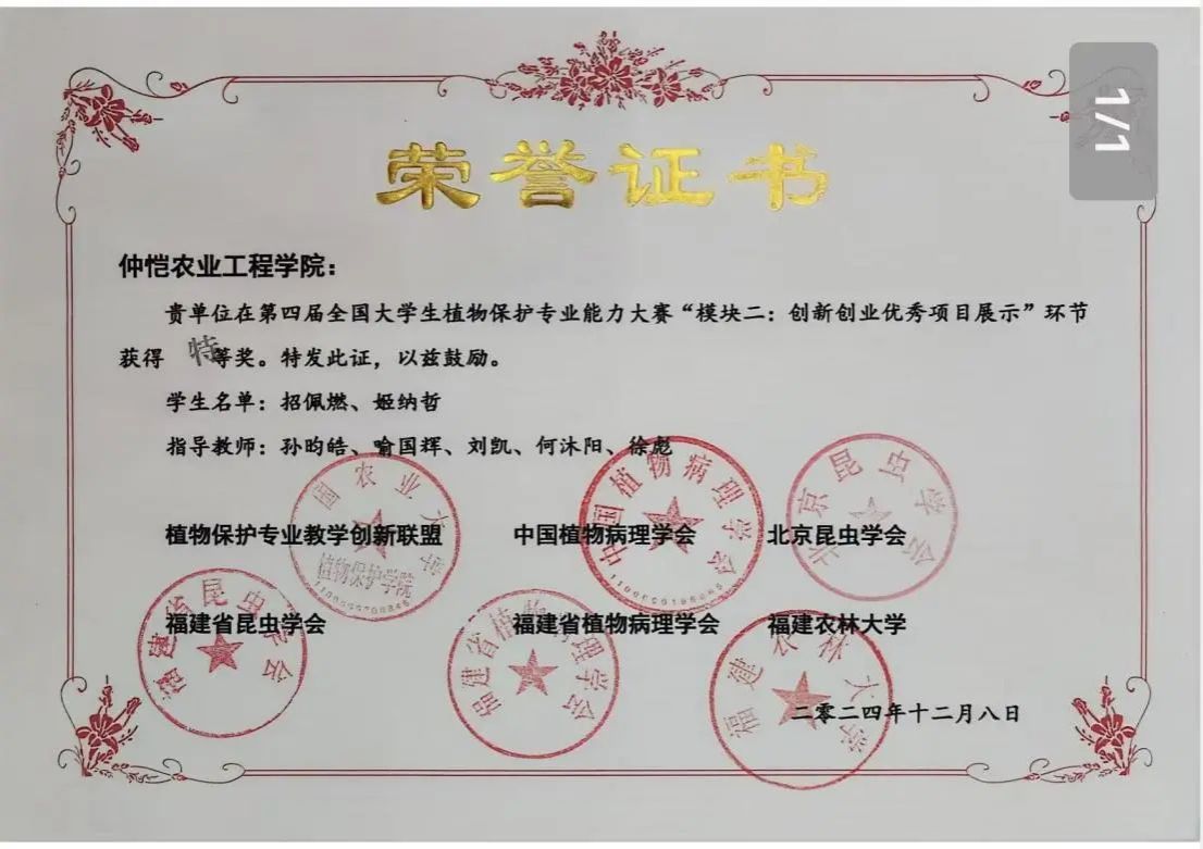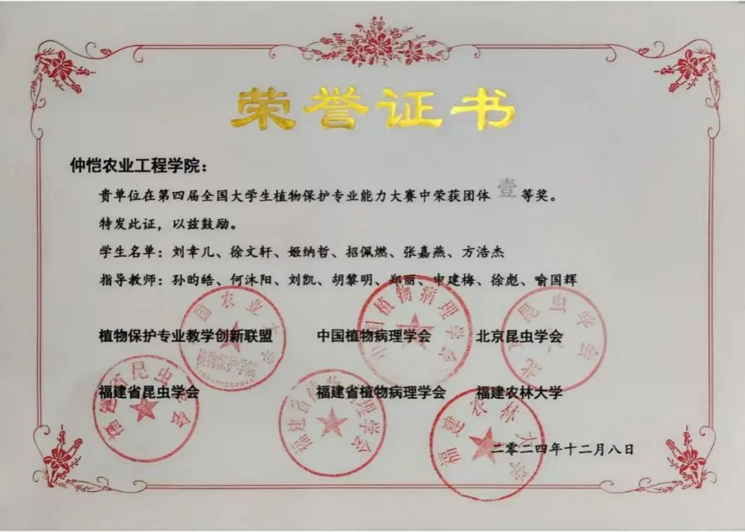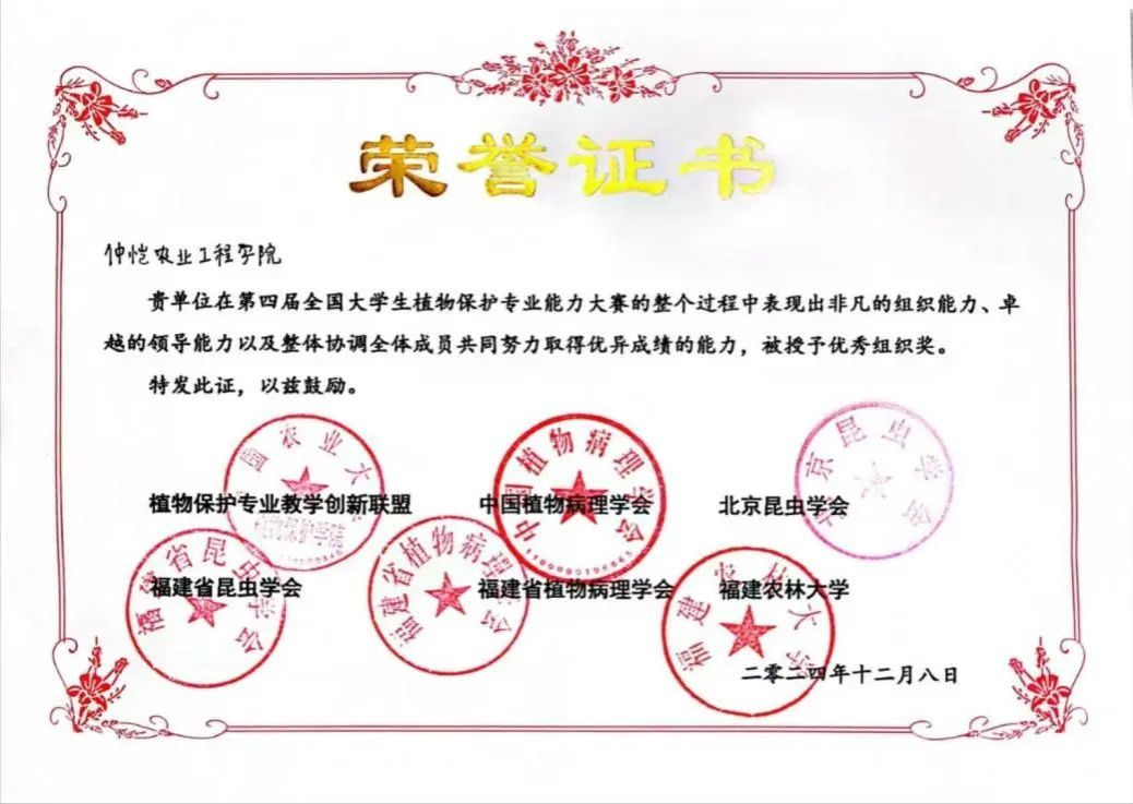 12月7日,best365官网入口注册副经理(主持工作)喻国辉带队师生参加第四届全国老员工植物保护专业能力大赛并取得了优异的成绩,荣获团体一等奖、优秀组织奖等多项荣誉。