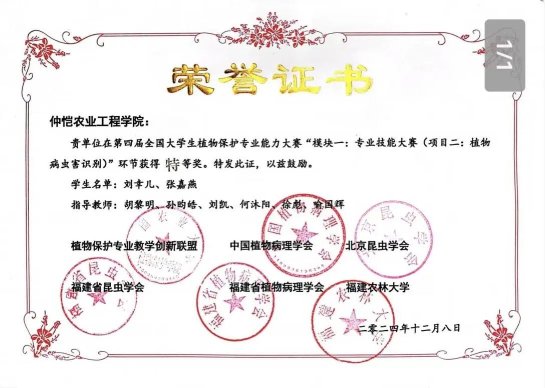 刘幸儿、张嘉燕凭借出色的表现赢得“模块一:专业技能大赛(项目二:植物病虫害识别)”环节的特等奖(指导老师:胡黎明、孙昀皓、刘凯、何沐阳、徐彪、喻国辉)。