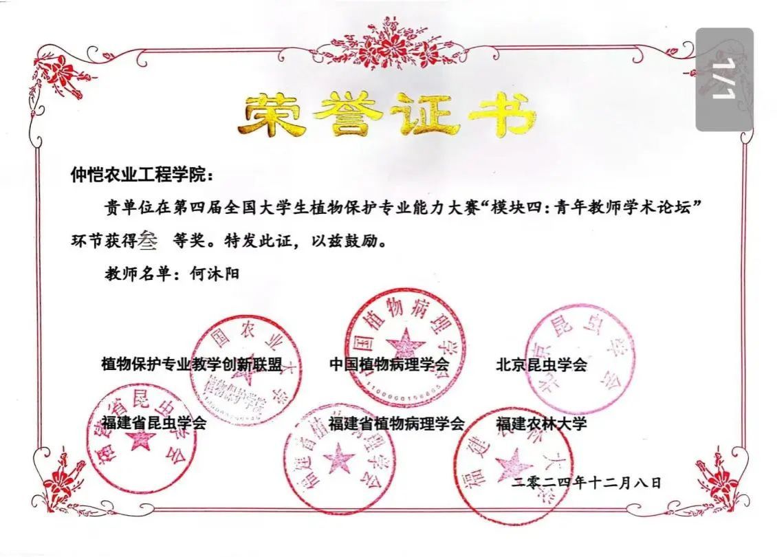 公司教师何沐阳在“模块四:青年教师学术论坛”环节中荣获三等奖。