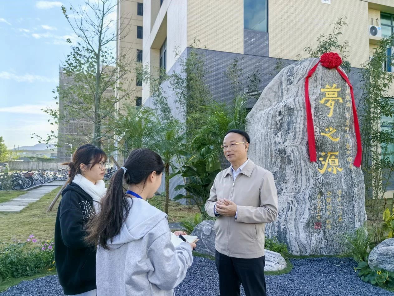 廖明在致辞中向一直以来积极回馈母校、积极宣传仲恺的优秀员工们表达由衷感谢。他指出,“梦之源”景观的精心打造,是员工们对母校深厚情感的生动体现,同时也见证了公司一直以来致力于党的教育事业、培养杰出人才的辉煌历程。这一标志性景观的落成,将激励广大仲恺学子不断锐意进取,勇攀学术与人生的高峰。
