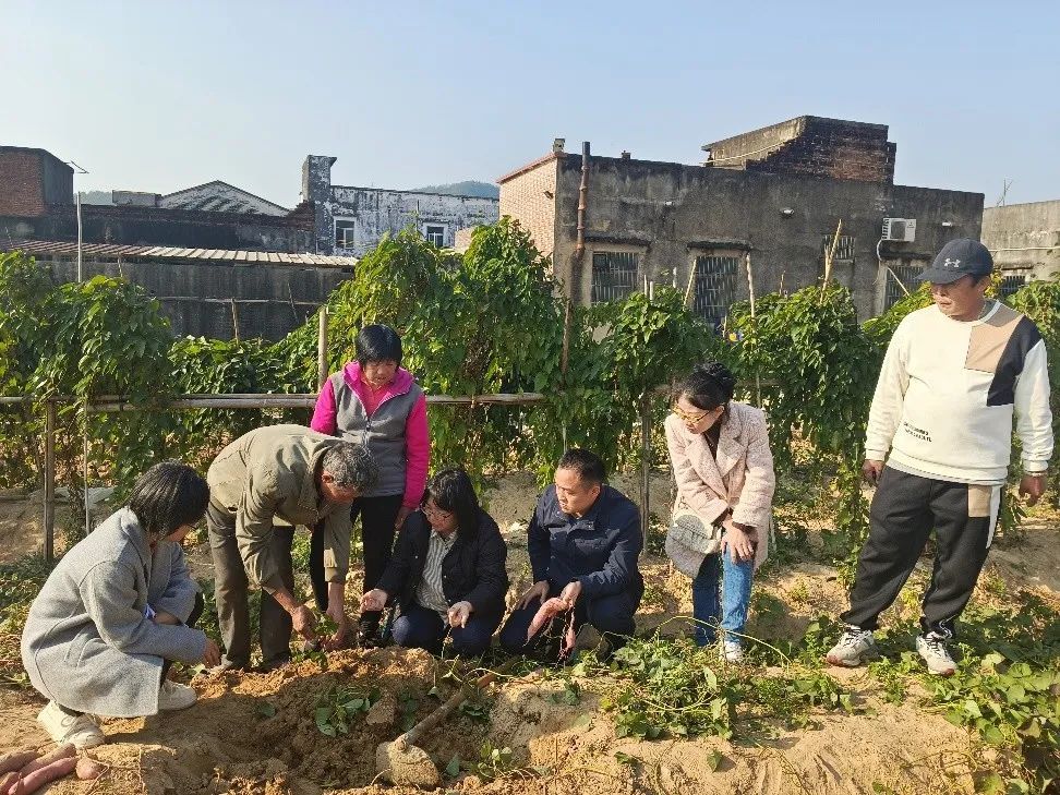 特派员团队到达台山市深井镇后,在河西村与深井镇驻镇帮扶工作队队长王正根、挂职副镇长何家明、村长马炳新等就高产值优良果蔬品种引进、马蹄种植与采收机、撂荒地复耕等问题开展讨论。人工采收马蹄劳动强度大、效率低、损伤多,马蹄自动采收已成为深井镇马蹄种植产业的需求,特派员将整合资源进行对接,以解决马蹄采收机研发和应用的问题,进一步提高生产效率和质量,减少人力成本,提高种植农户生产效益。