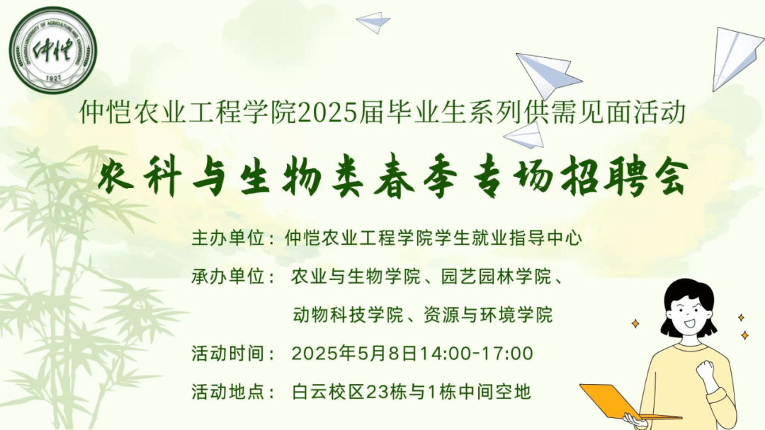 为满足广东省农业行业对人才的需求,促进2025届农学类、生物类等毕业生的顺利就业,并给广大用人单位搭建好人才输送平台、满足各企事业单位人才结构调整和人才战略储备的需求,积极促进公司2025届毕业生顺利实现高质量就业,由best365官方网站员工就业指导中心主办,best365官网入口注册、园艺园林公司、动物科技公司、资源与环境公司共同承办,定于2025年5月8日14:00-17:00举办best365官方网站农科与生物类2025届毕业生春季专场招聘会。