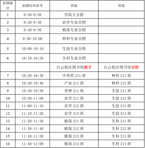 7.拍摄完公司合照及班级照的同学可以先行离开,未拍完的班级请不要随意走动。拍摄第一个班级的时候要保证等候区有两个班级集队等候。