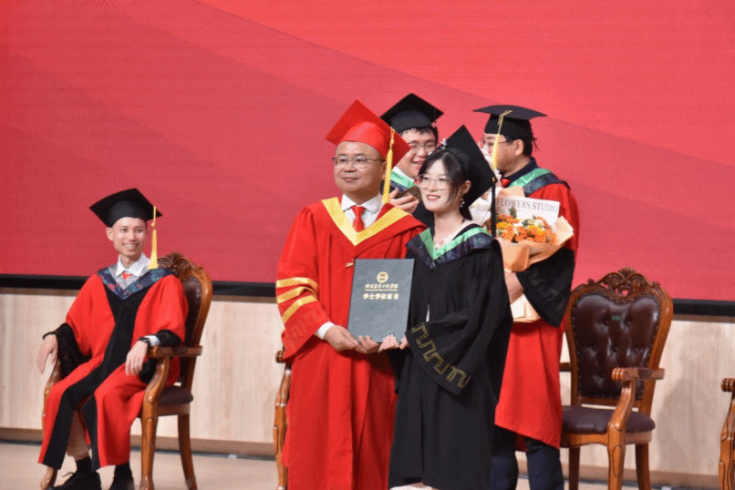 毕业生们身着学士服,带着期许与忐忑,依次踏上授位台。现场满是温馨与感动,有的同学与师长拥抱,将校园情谊化为有力的温度;有的带着创意道具拍照,把青春的活泼与不舍融入画面。这一场仪式,不只是学位的授予,更是公司对学子们“始于初心,成于坚守”的肯定,是“今朝暂别,来日方长”的期许。