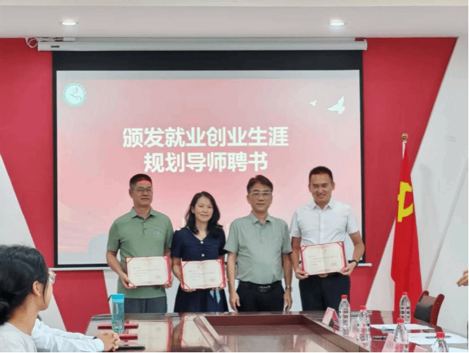 颁奖环节后,党委书记周超雄为嘉宾们颁发就业创业生涯规划导师聘书,期待嘉宾们在未来能为员工的职业发展提供更多专业指导。