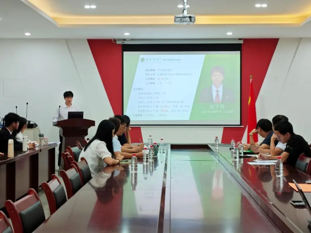 经个人申报、公司资格初审等环节严格筛选,招佩燃、曾炳坚、纪子贤、钟镱淼、吕铭慧、徐文轩6名同学最终入围答辩环节。为保障评审公平性,选手们通过抽签确定上场顺序,依次登台汇报,围绕思想道德修养、学业成绩、获奖经历、科研实践、志愿服务等方面,全面展现个人综合素养与成长轨迹。