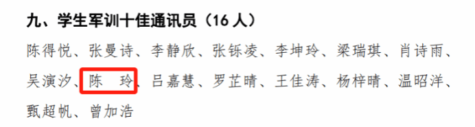 员工军训十佳通讯员:陈玲
