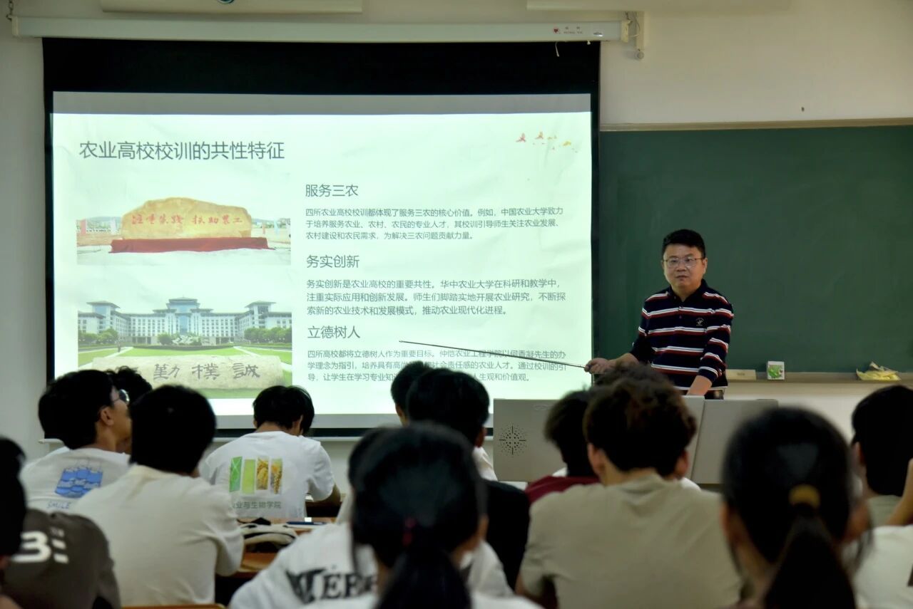 接着,他从农业教育的核心议题破题,带领大家深度梳理农业高校校训的育人内核与服务“三农”的价值共鸣,进而延伸至人才培养中“实践能力”与“跨学科素养”的融合要求。为让抽象的发展方向更可感,他还结合华中农业大学智慧农业的创新探索、公司“扶助农工”的办学传承等鲜活案例,把农科人的精神传承与时代创新,具象为可触摸的成长坐标。
