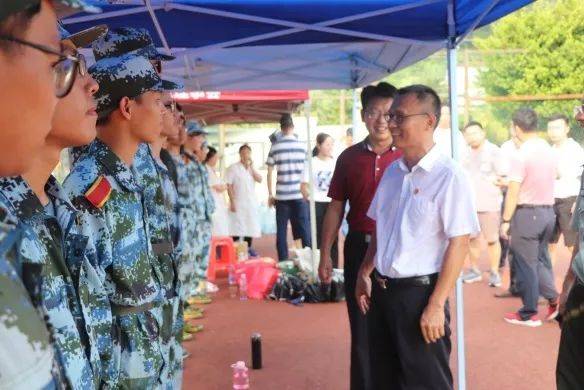 走进农生院大本营,张文峰一行与同学们亲切交流,为同学们送上节日的祝福。校领导对身体不舒服无法训练的同学们关怀备至,向他们细细询问了对军训的体验和感受,并希望他们尽快恢复状态、投入到军训的锻炼中。张文峰认真检查了公司员工训练进展,对公司承训教官和同学们连日来开展军事训练工作给予了高度评价和肯定。