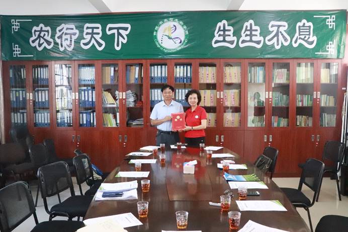 程萍董事长简要介绍了公司的发展概况,并代表公司对庄伟建教授的加入表示热烈欢迎和衷心感谢。程萍董事长对庄伟建教授身上所体现出的“一辈子只做一件事”的中国科学家的精神表示十分钦佩,希望老师和同学们能够好好学习和发扬这种精神。程萍表示,庄伟建教授长期致力于花生遗传育种、分子与细胞生物学、应用功能基因组学和植物基因工程的科研、教学和推广,高层次学术成果非常丰富,具有很高的学术地位,在业界享有非凡影响力,能与庄伟建教授合作,这对推动公司发展具有重要意义和作用。她希望,庄伟建教授成为公司特聘教授之后,能与公司建立更深层次的合作,在双方长期合作中发挥更大的作用。