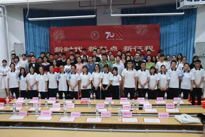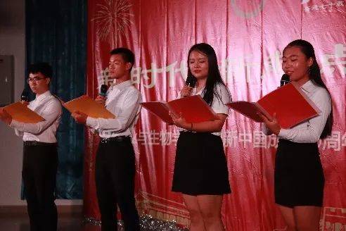 为庆祝新中国成立70周年,欢迎2019级新生的到来,10月12日晚,“新时代 新起点 新征程”庆祝新中国成立70周年暨2019级迎新晚会在综合楼D1小礼堂举行。公司党总支书记陈丹雄,轻工食品公司党总支副书记李汉雄,辅导员周静静、苏登、孙晓芳与2019级全体新生欢聚一堂,共同欣赏了精彩纷呈的晚会。