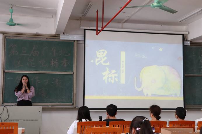 比赛开始,参加昆虫标本制作大赛的三十七支队伍先后展示了队伍制作的精美昆标作品,不仅有五彩斑斓的凤蝶、灰白相间的夜蛾、更有身材魁梧的甲虫。随后,各支队伍通过PPT讲演的方式,为现场观众评委详细地介绍了本队作品的主题、设计理念和所用昆虫,选手们用精美简洁的PPT和简练有力的讲解词,力求为评委观众展现作品最靓的一面。