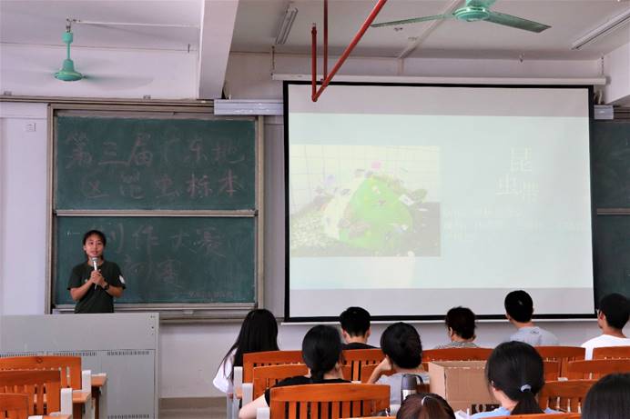 曾永三为本次活动作总结发言。曾永三首先对获奖的同学们表示热烈的祝贺,并预祝他们能以优异的成绩为校争光。他希望同学们能够更多的在创新、趣味、专业等方面进行思考探究,发挥聪明才智,争取将创作的主题更加贴近当今的时代背景。紧接着,他建议同学们将理论与实践相结合,更加积极主动地去学习昆虫鉴定的知识,努力将昆虫物种的鉴定做的更加准确和专业。最后,他期待选手们能在下一次比赛中创作出做工更加精细的作品,代表仲园取得好成绩。