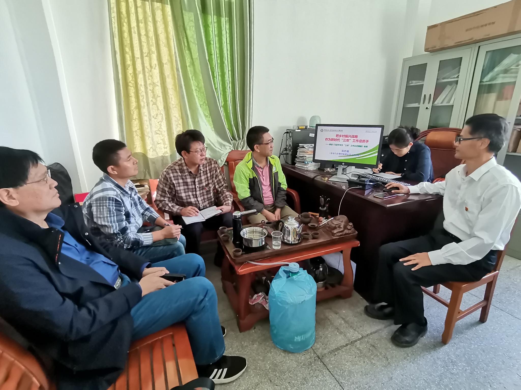 最后,公司领导班子成员就如何助力乡村振兴积极发言讨论。郑奕雄强调,公司要加强社会服务,并根据《关于成立牵头联络组对接地级市服务乡村振兴战略的通知》(农生联字〔2019〕4号)的文件精神提出牵头联络组的三点职责:一是积极落实公司领导战略部署与工作安排,主动承担包片校领导交付的各项任务,集聚科教资源,优化推进路径,为公司服务地方经济和乡村振兴做出积极贡献;二是牵头联系所对接的地级市,重点对接现代农业产业园和“一村一品一镇一业”建设,为开展校地合作穿针引线、为拓展校企合作牵线搭桥、为发展校村合作开道铺路;三是以新农科专业建设、硕士点建设和创建产业公司为契机,建立健全公司在地方的教学实践基地、成果转化基地、精品示范基地和新型研发机构等,夯实服务平台,保障服务成效。