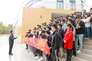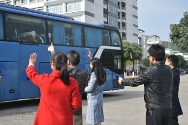 下午1点左右,考研学子带着公司师生的祝福与礼物,陆续上车,奔赴考场。