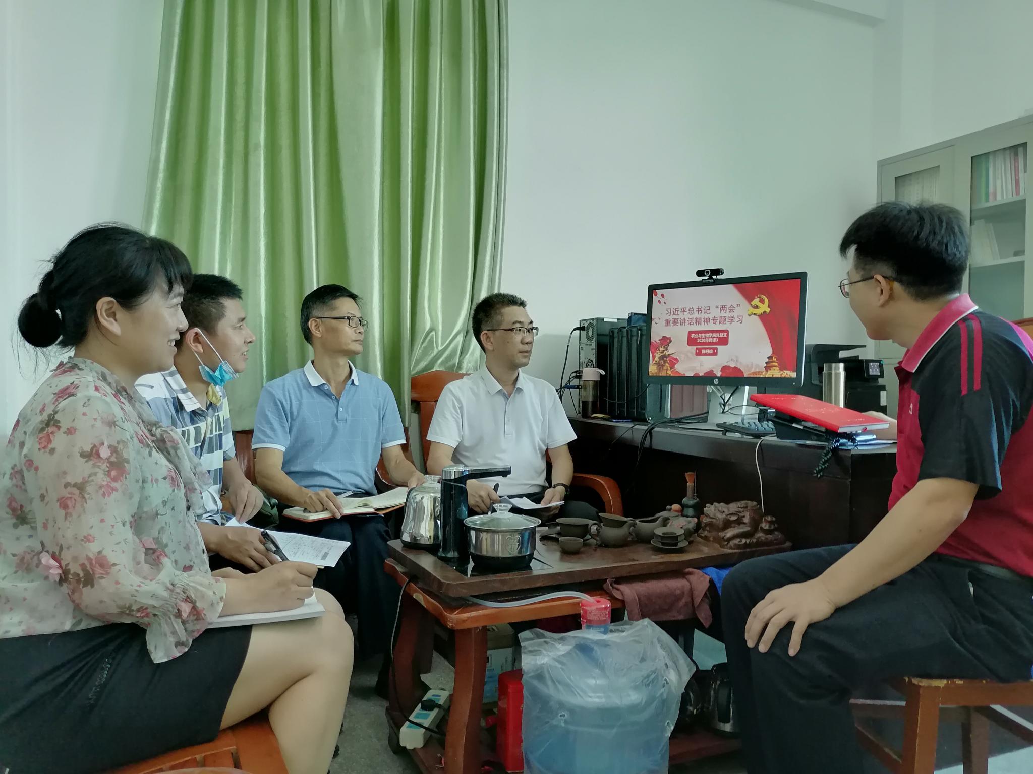 6月4日下午,农业与生物公司党总支召开中心组理论学习会议,专题学习习近平总书记在全国两会期间的重要讲话精神,认真学习全国政协十三届三次会议和十三届全国人大三次会议精神,会议由党总支书记陈丹雄主持,全体领导班子成员参加会议。