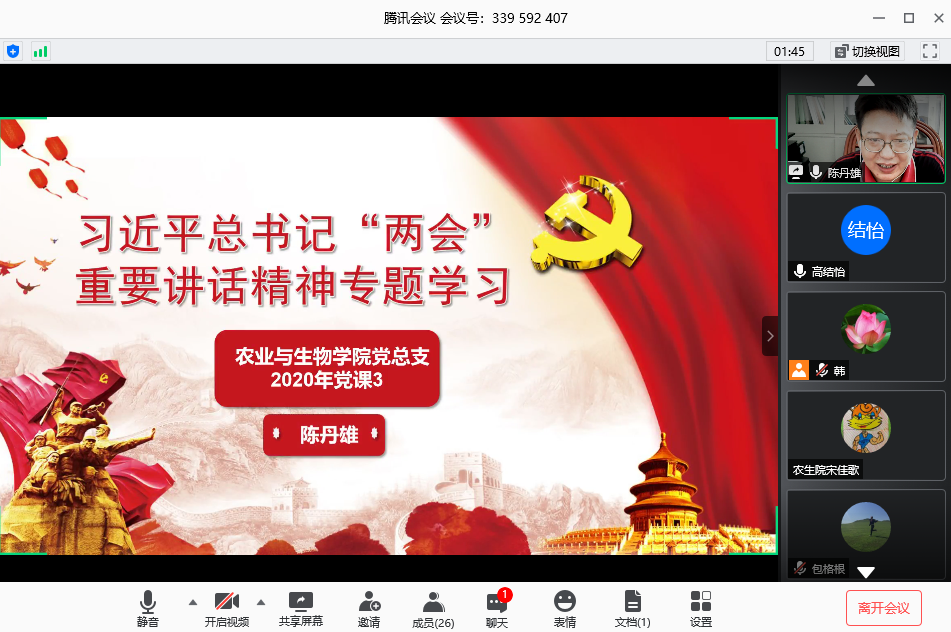 6月4日下午,农业与生物公司党总支书记陈丹雄为公司教工第一党支部党员讲授主题为《习近平总书记“两会”重要讲话精神专题学习》的党课。会议由教工第一党支部书记韩群鑫主持。