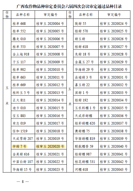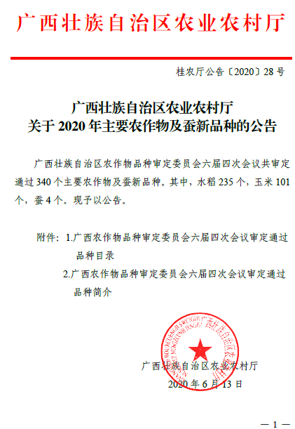 6月13日,广西壮族自治区农业农村厅发布关于2020 年主要农作物新品种公告(桂农厅公告〔2020〕28 号),公司best365官网入口注册、岭南特色作物遗传育种校级科技创新团队、广州市特色作物种质资源研究与利用重点实验室、广东省鲜食玉米产业技术创新团队选育的甜玉米新品种“仲甜7号”通过广西壮族自治区农作物品种审定委员会六届四次会议审定,审定编号:桂审玉2020020号,予以公告。该品种由公司刘鹏飞博士主持选育,经广西壮族自治区品种区域试验及新品种审定委员会审核,该品种符合广西鲜食玉米审定标准,通过审定,可在广西全区种植。这是公司鲜食玉米育种的又一重要科研成果。
