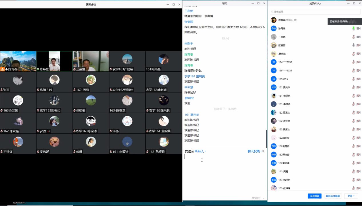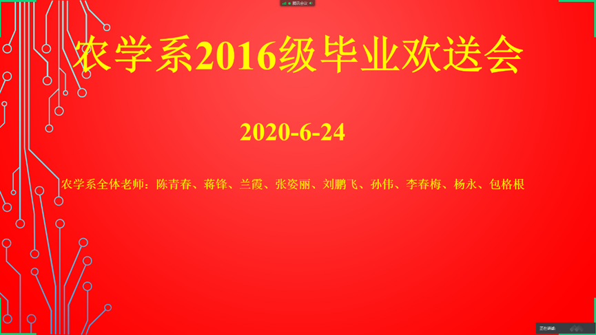 陈青春副教授还邀请到了农学161、162、163班的助班师兄和师姐为同学们送上美好祝福和祝愿。毕业班农学16级的同学们参加了会议,并积极发言,尤其是各班班长班委们,共叙离别情,憧憬未来辉煌的相聚。