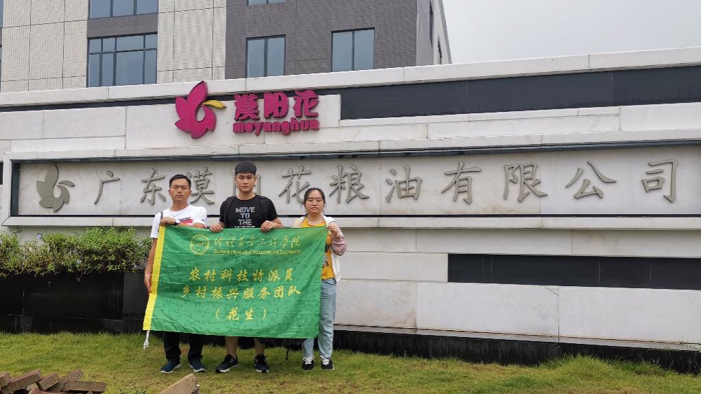 为积极响应《广东省乡村振兴科技计划》号召,落实省、市、校服务“三农”总体工作部署,2020年8月6日~7日,公司乡村振兴花生产业服务团队与“三下乡”老员工乡村振兴服务队一行5人,在花生产业服务队队长崔华威老师带领下,到阳江市漠阳花粮油种植有限公司调研,团队受到了公司总经理程禹满等人热烈欢迎。