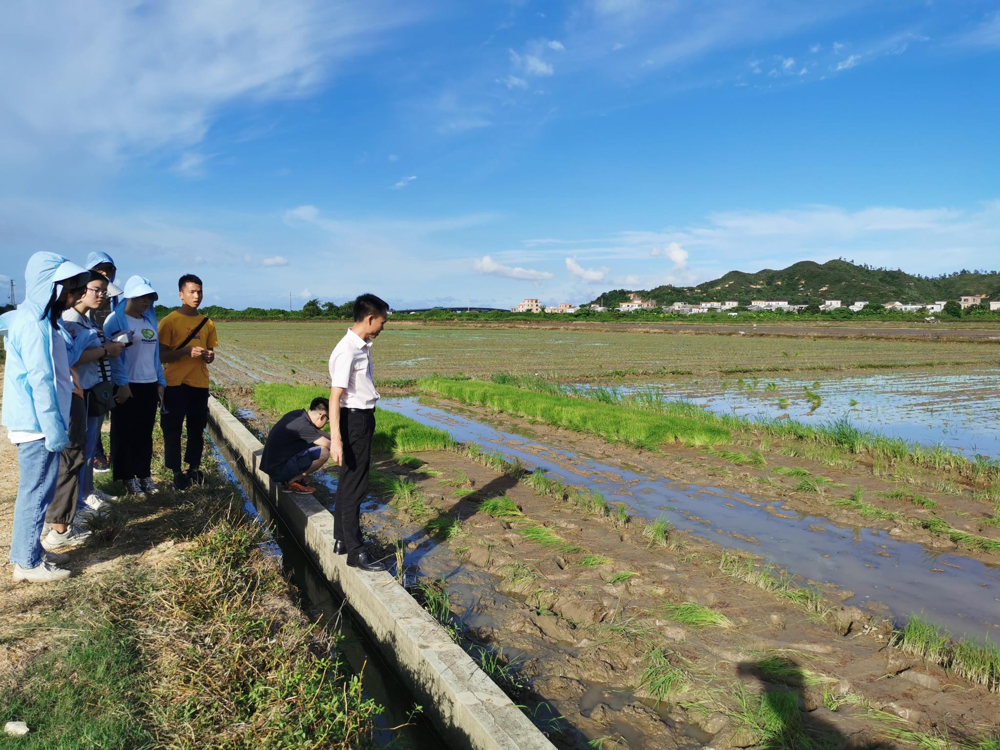 8月8日下午,在唐辉武副教授的带领下,团队前往赤溪镇渡头村水稻种植基地参观学习。渡头村总耕地面积一千多亩,其中水田约692亩,旱地约390亩,盛产稻谷、番薯、香蕉。