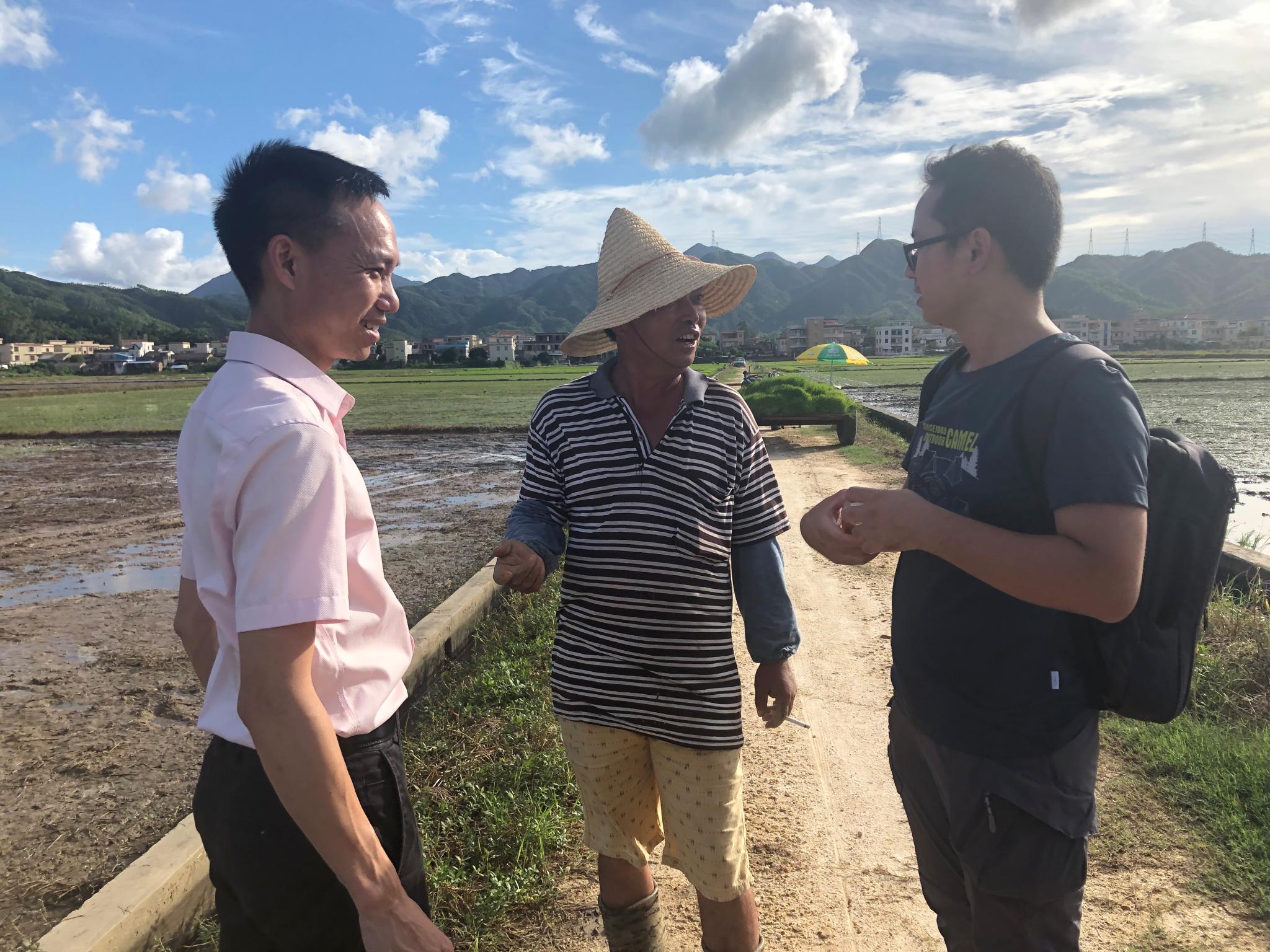 北门村罗主任向团队介绍了当地水稻种植中存在的一些问题,包括长期使用化肥导致土地硬化、水稻病虫害严重、统防统治难以推广、土地使用率不高等。