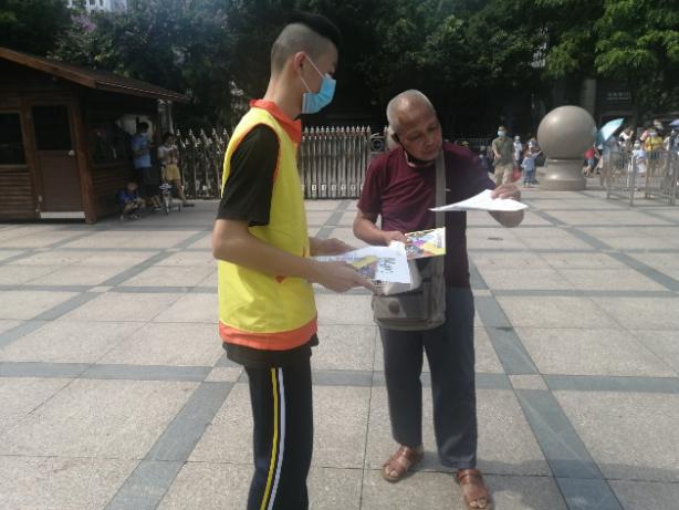 为深入了解广州市越秀区居民对科学、健康、文明生活理念的理解,队员们开展了主题为“关爱野生动物,拥抱绿色生活”的调研和宣传活动,以派发宣传单以及“守护生命家园”手册、填写调研问卷的方式在当地开展活动,向居民宣传保护野生动物和科学、健康、文明生活的重要性。队员们积极参与其中,认真对待,尽管烈日当空也挡不住队员们的热情,最终圆满完成了此次宣传和调研活动。