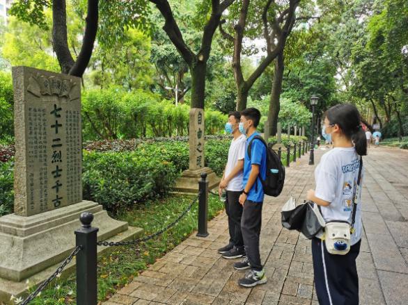黄花岗七十二烈士墓园是为纪念孙中山先生领导的中国同盟会在广州三二九起义中牺牲的烈士而建。虽然队员们已经了解过广州三二九起义烈士的壮举,但是在队员们实地参观黄花岗七十二烈士墓园后,才更加深刻的体会到在那段黑暗冰冷的时光里,打响反抗的枪声需要多大的勇气和代价。历史长河奔腾不息,烈士英魂浩气长存,英雄伟绩永垂不朽。不忘历史,缅怀先烈,吾辈自强!