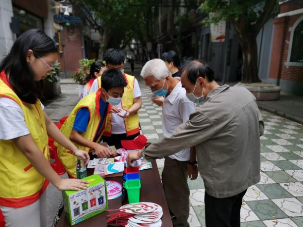 伴着午后的阳光,队员们在彩虹街开展了主题为“悦分类,越文明”的街展活动。活动过程中,队员们主动向居民讲述垃圾分类的方法和重要性等,以“垃圾分类”小游戏、派发奖品的方式吸引居民前来参与。同时,队员们从游戏中分析了解当地居民对常见垃圾分类的正确率和准确性,希望提高居民的环保意识,让垃圾分类不再是一句口号,而是一种行动。