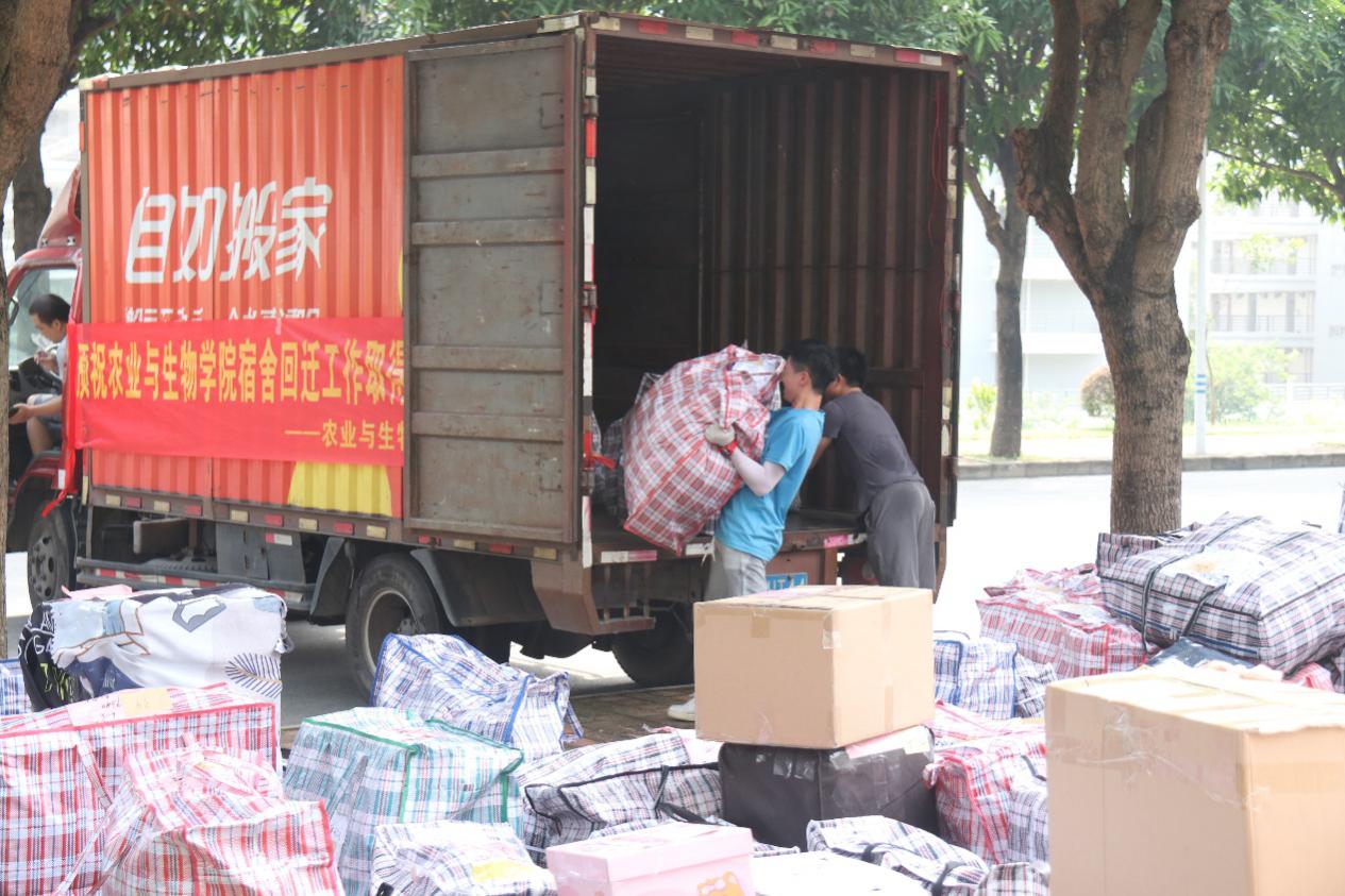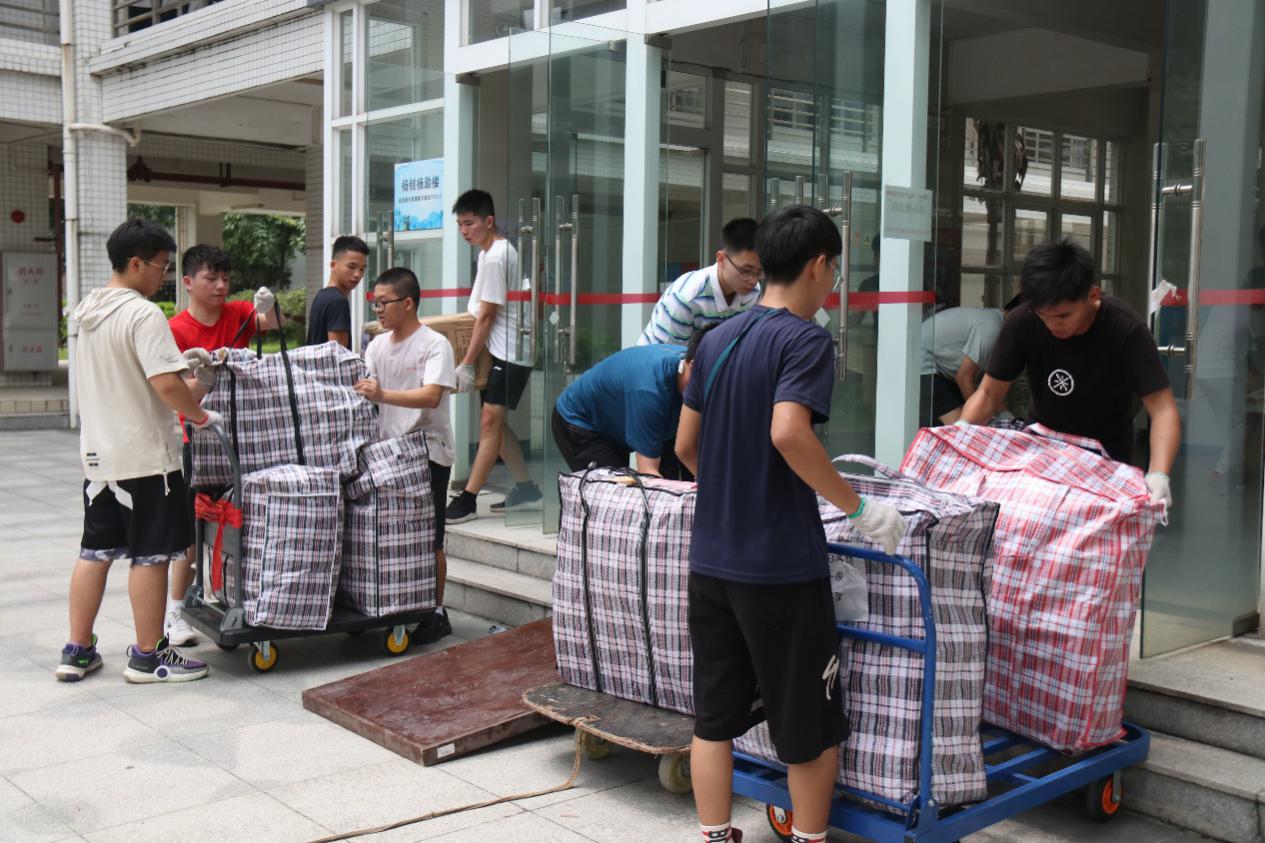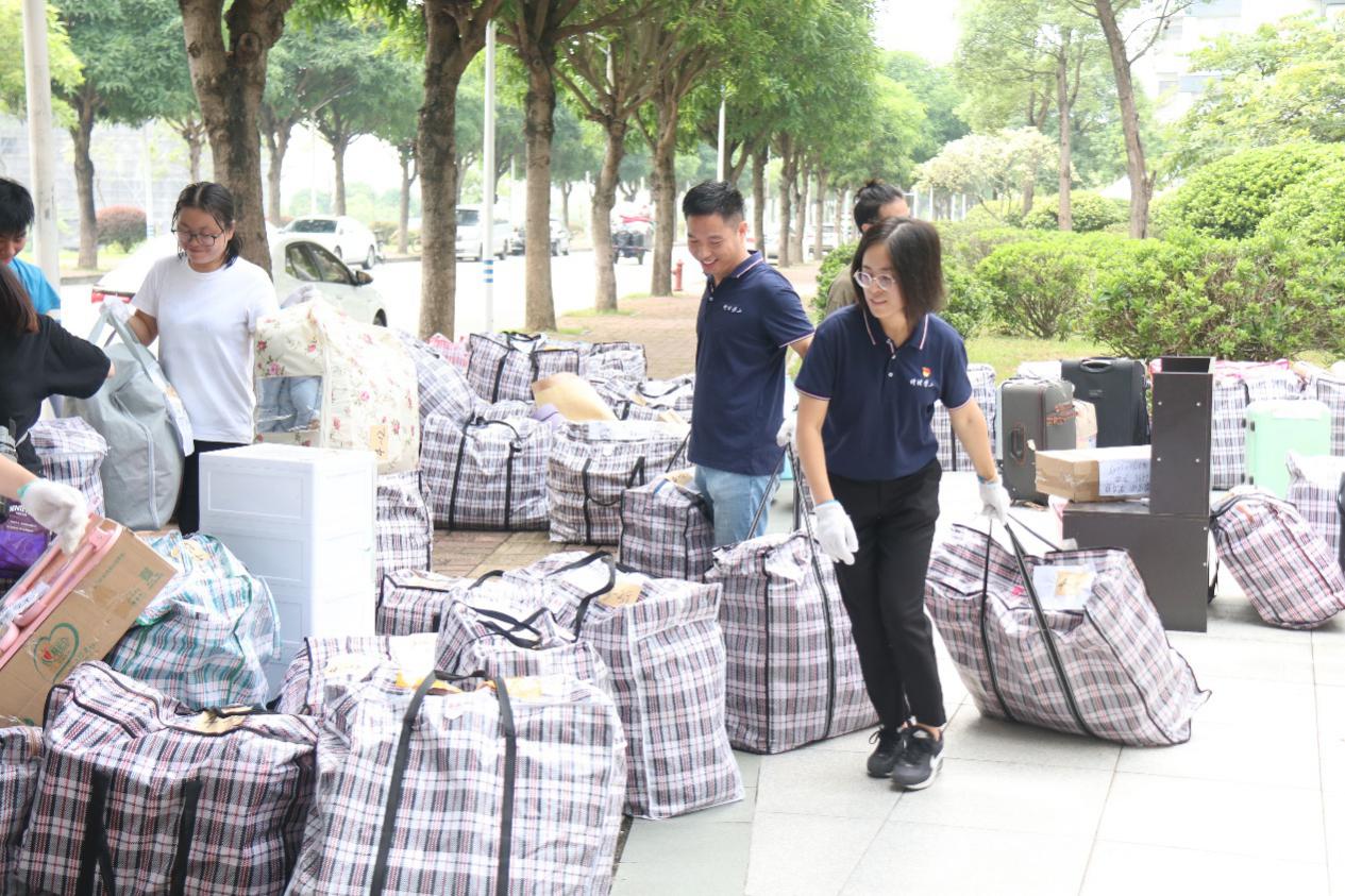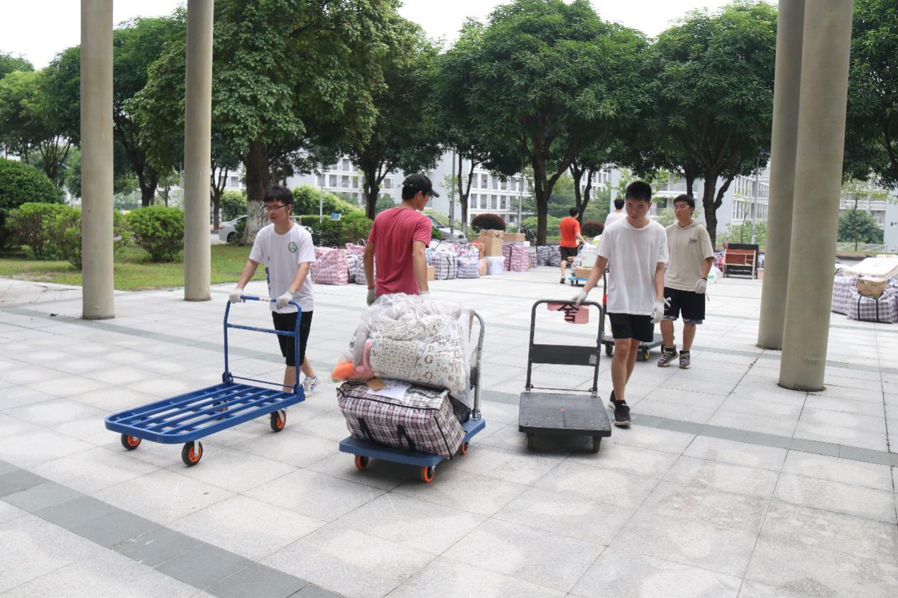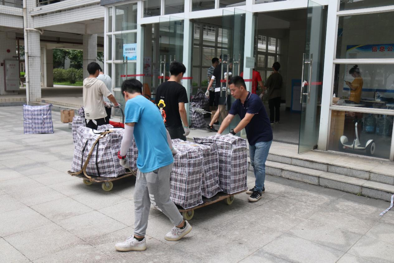 在师生志愿者的不懈努力下,公司只用一天就保质、保量且超高效地完成了2130件行李、59间宿舍的回迁工作。每一位师生志愿者坚守各自岗位,积极配合,相互帮助,整个搬迁场面忙碌而井然有序。炎炎夏日,师生们不辞辛苦、不怕劳累,一道道身影游走于宿舍楼层间,来回搬着一袋袋沉重的行李,汗水浸湿了衣衫,步伐却未曾停止。公司师生密切配合、不畏难、不怕苦、齐心协力、共克难关,共同打赢了宿舍回迁攻坚战。