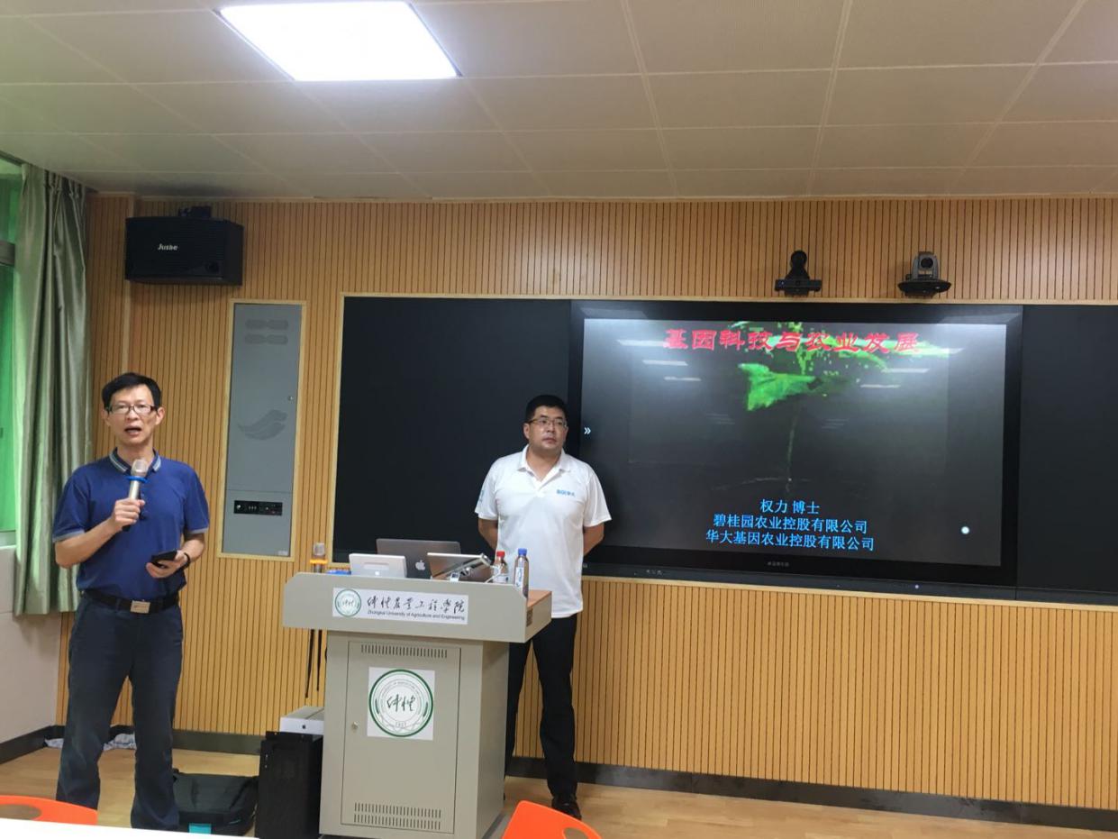 9月14日下午,公司客座教授、华大农业研究院副经理权力博士在公司海珠校区402智慧课室为仲华基因科技产业班的同学讲授专题讲座。