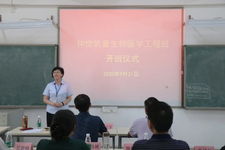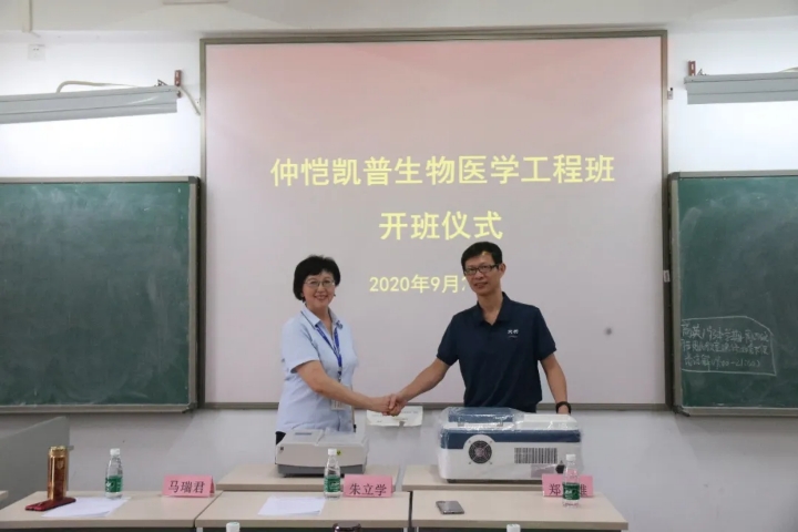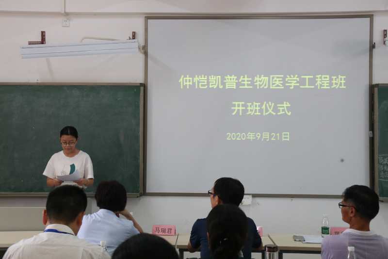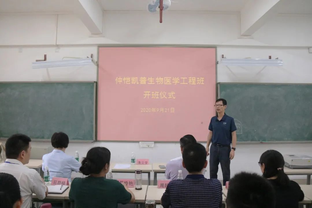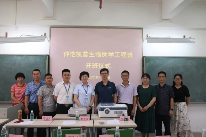 9月21日下午,仲恺凯普生物医学工程班开班仪式在白云校区综合楼302室举行。公司副董事长朱立学,广东凯普生物科技股份有限公司凯普公司经理马瑞君、人力资源部经理屈群峰,农生院领导班子、教师代表,首届凯普生物医学工程班的同学们参加了开班仪式。开班仪式由郑奕雄经理主持。