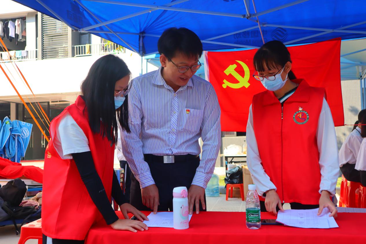 当天一大早,公司党总支书记陈丹雄、经理郑奕雄、党总支副书记周超雄,辅导员苏登、高结怡、孙晓芳来到新生报到现场看望新生、参加到迎新工作中。