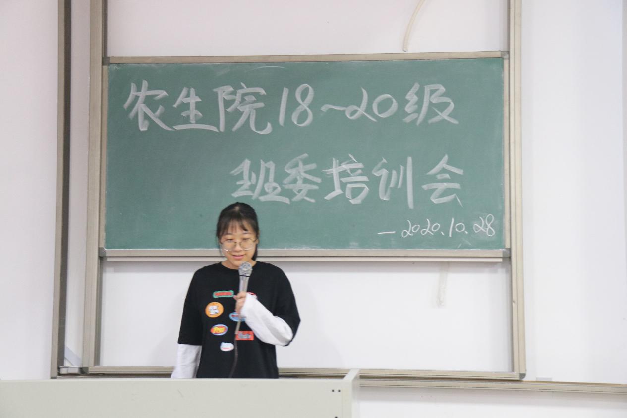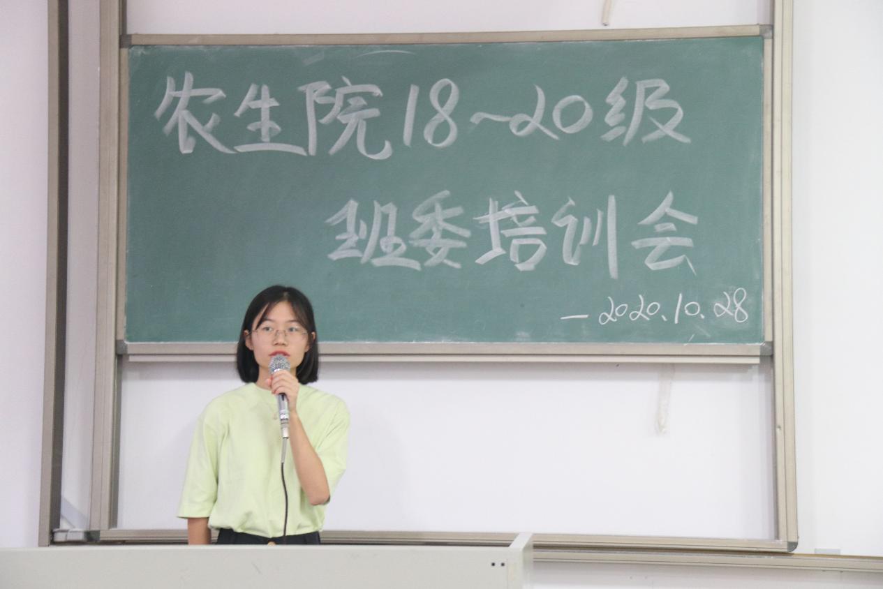 在612教室,农学181的梁华霞同学作为学习委员代表发言,她向学委提出了三点建议:首先要做到及时沟通交流,关于学习方面的问题要及时向老师和同学沟通交流。其次要做好榜样示范,学委在学习上应起到带头作用。最后要牢记工作职责,学委的工作关乎到整个班集体的学习,对待工作都一定要认真负责。