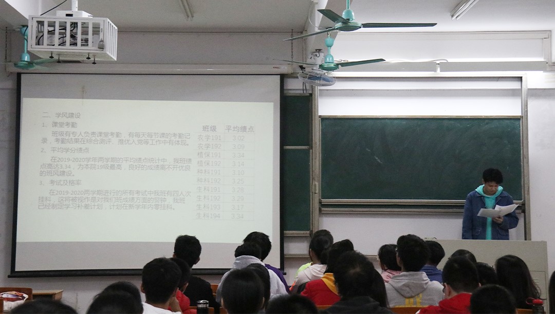 颁奖过后,优秀班级生科194的代表为大家分享建设良好班风的经验,他介绍了所在班级在学习和考勤等方面获得的成绩以及所采用的方法,并认为建设良好的班风需要制定相关的班规和制度,并切实执行和落实,班委需要尽到自己的职责,为班级建设贡献自己的一份力量,班级的同学们也要积极配合班委的工作,这样才能建设好班级班风。