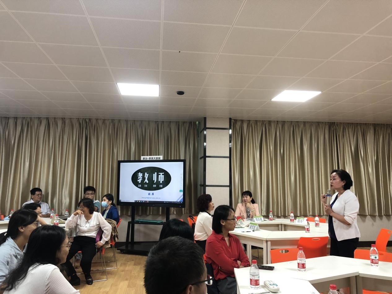 张雁教授以现场互动的形式开题,并结合课堂教学、生物学综合实验课等实例,详细生动地阐述了课堂中如何溶盐于水式地融入课程思政元素,做到“润物细无声”。此外,张教授也从自身的教学经验出发,为在座教师们提出教学中的课前、课中、课后如何进行准备、回馈和改进,以达到最佳的教学效果,提高专业课程教学环节的育人功能。最后,张雁教授以拆分“教师”的四大含义,即“品德、文化、思辨、价值”,深刻阐释了“教师”的内涵。