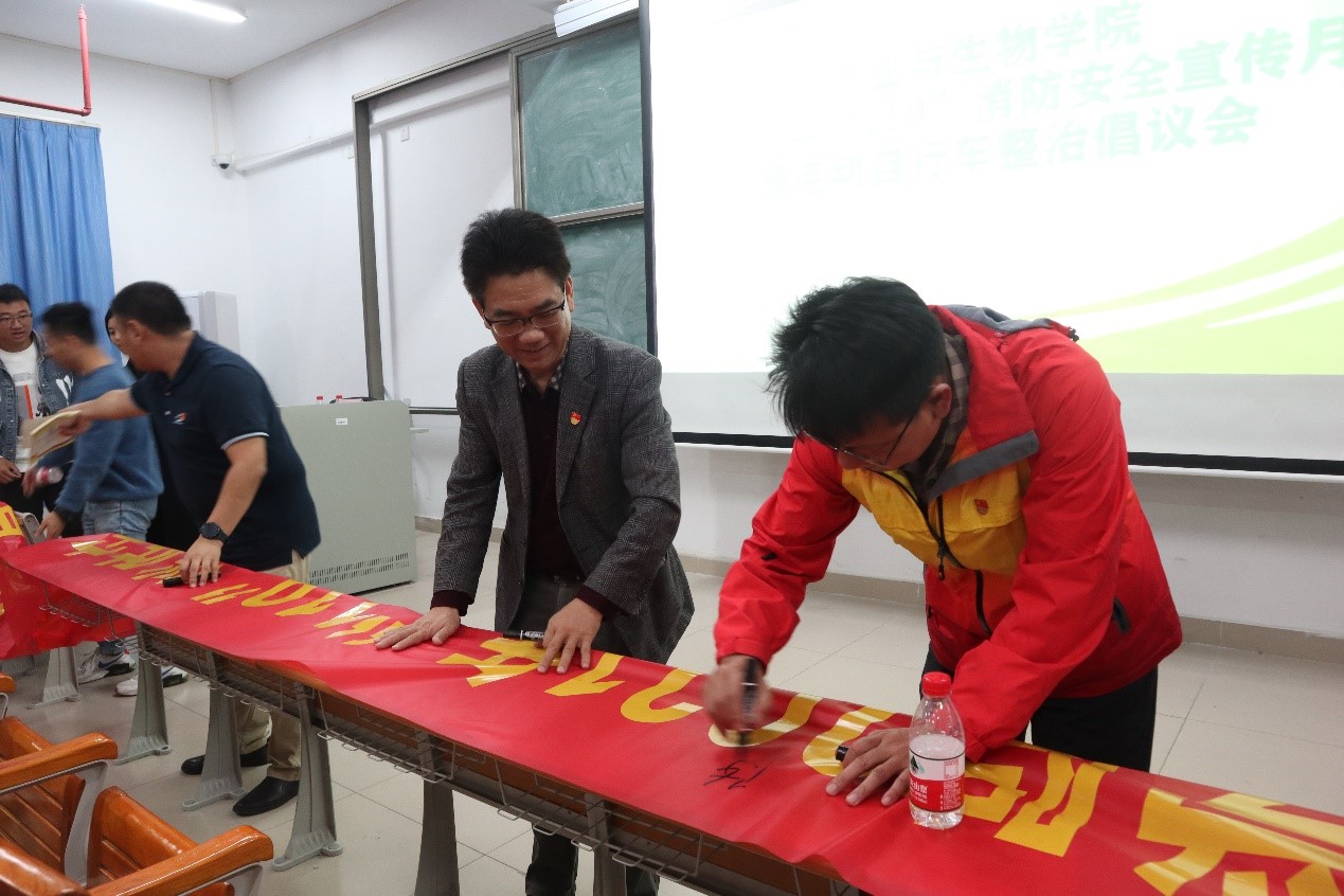 最后,所有师生一起在横幅上签字,标志着公司“119”消防安全宣传月暨电动自行车整治倡议行动正式拉开序幕,为后期行动的开展奠定了良好的基础。