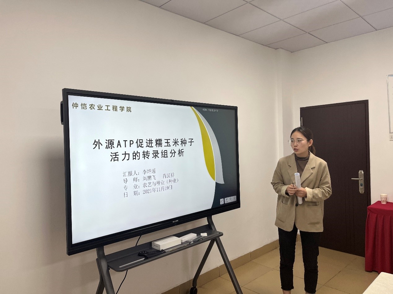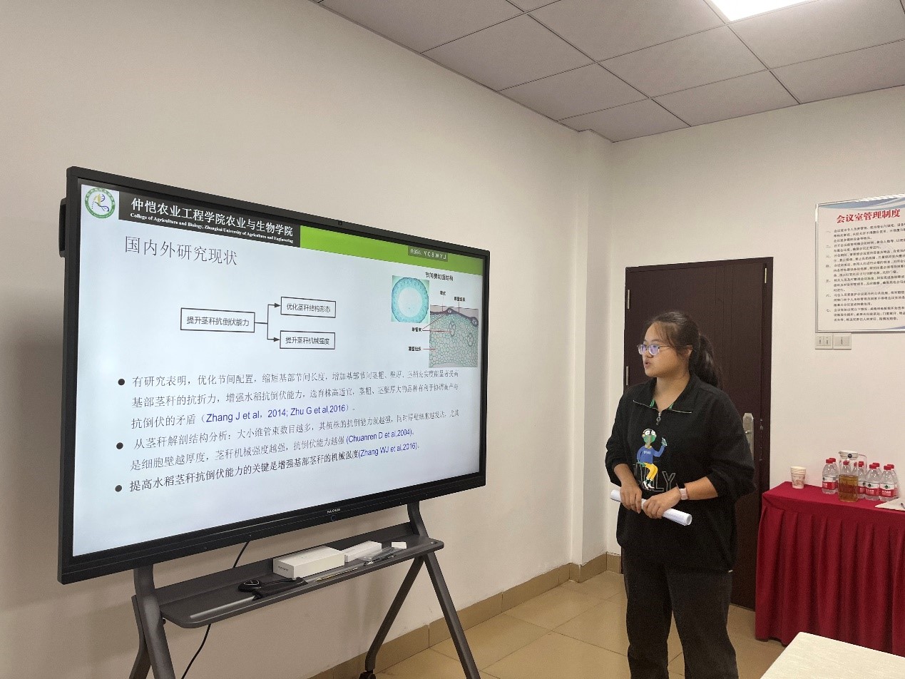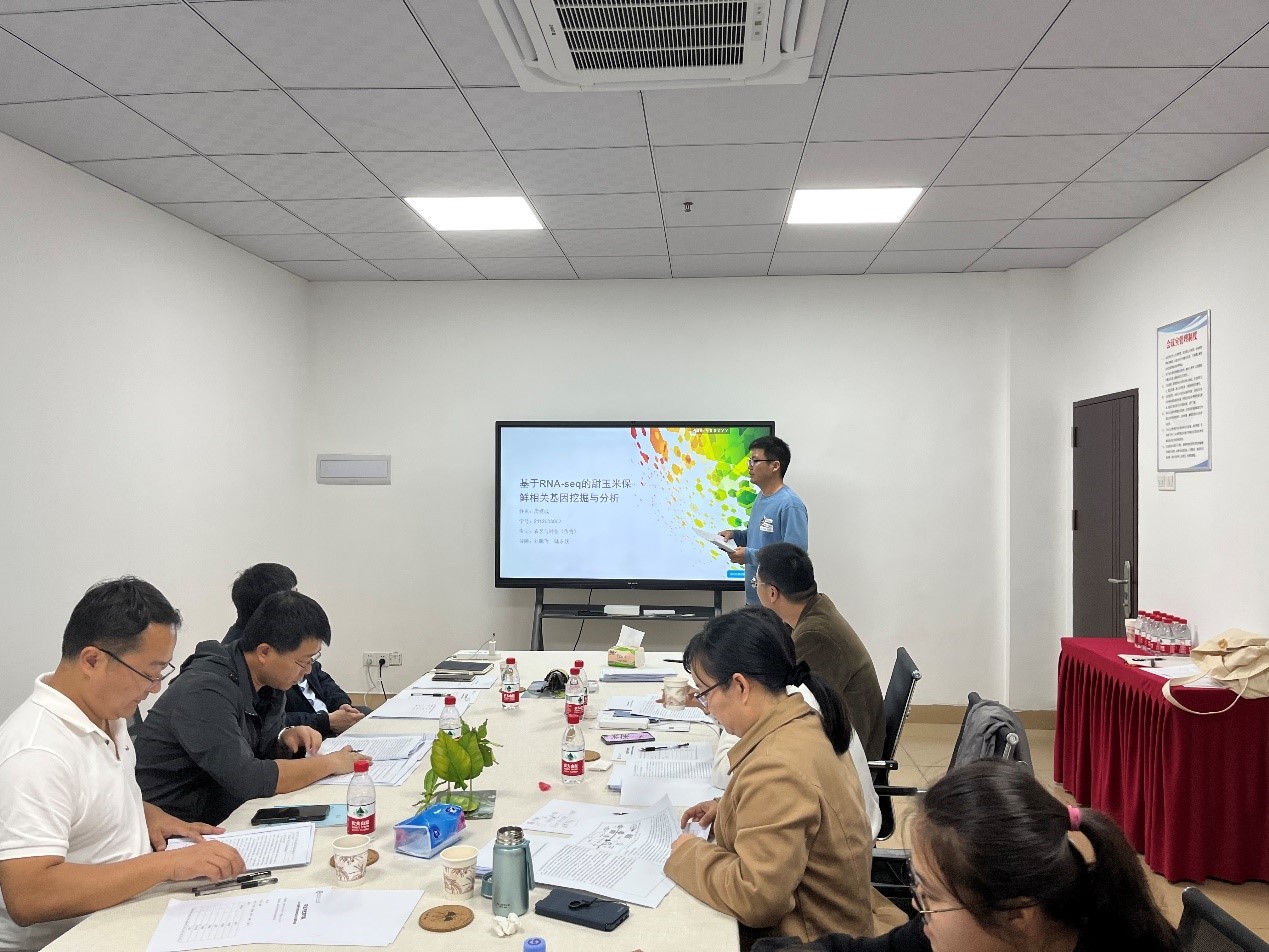 首先作物与种业方向专业负责人蒋锋副教授就研究生开题的目的意义及重要性进行发言,告诫二年级研究生要通过论文开题,明确实验主题,看清实验方向;还要搞清楚要研究什么,为什么研究它;最后通过开题报告的撰写明确实验步骤、研究思路、研究方法等。随后按研究方向将研究生分为两组进行了开题报告会。