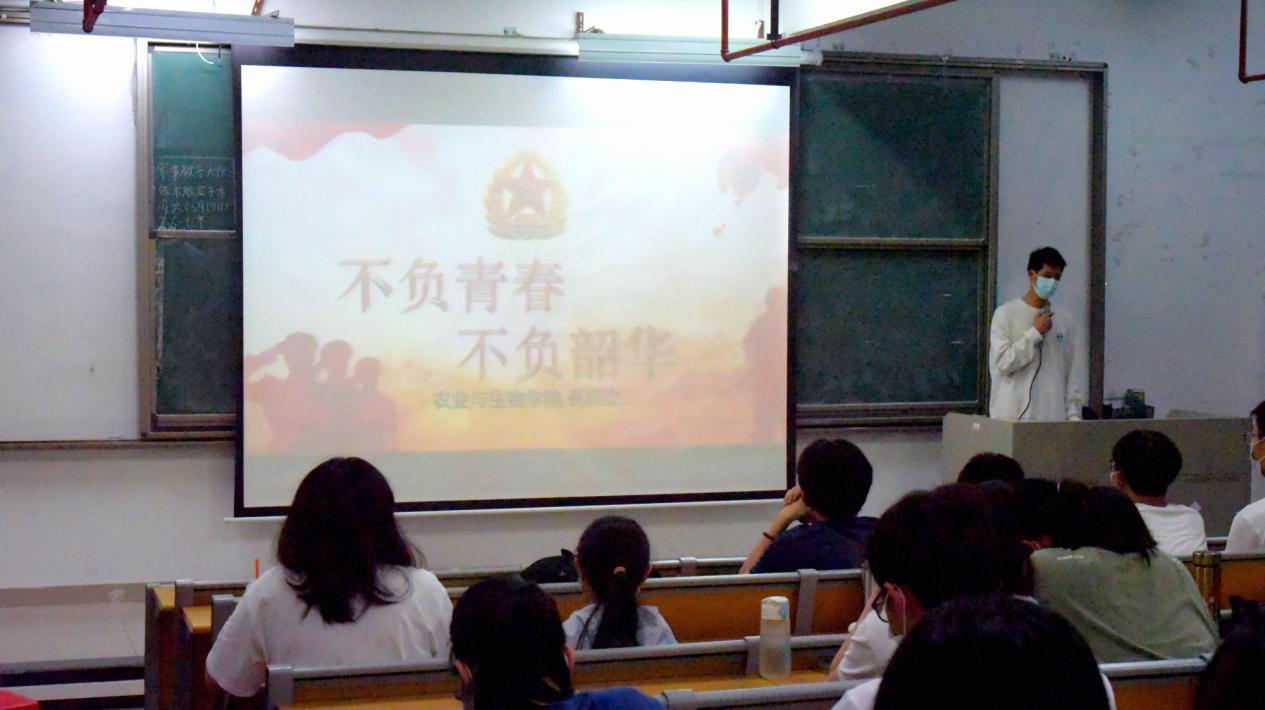 会上,孔庆立首先从为什么参军、参军带来的变化以及参军入伍国家政策这三个方面介绍了老员工征兵的基本情况。接着他分享了他在军营生活的收获和他学习到的珍贵知识。通过亲身经历让同学们对老员工入伍政策有了充分的了解,激发了同学们对参军的热情,努力争当为祖国为人民奉献的一员。