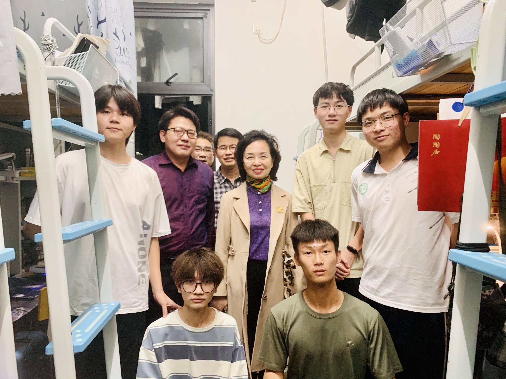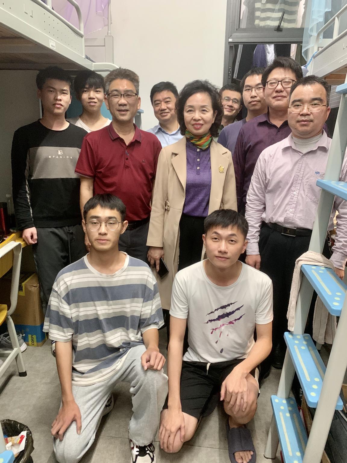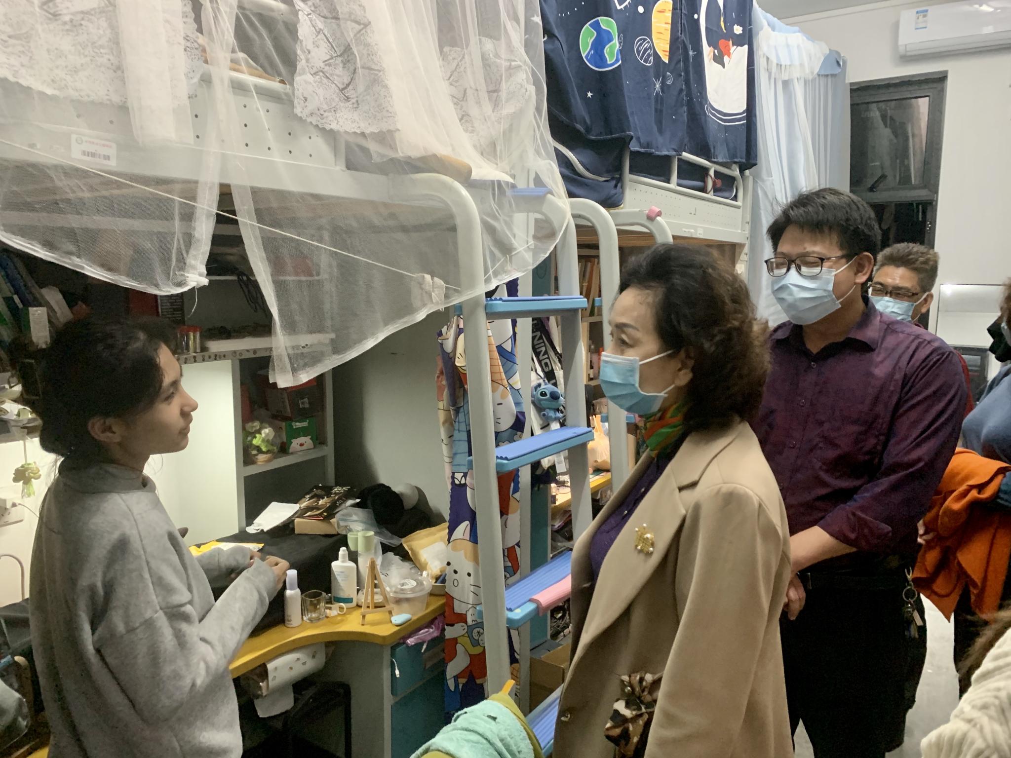 为深入了解清明节前后及疫情防控期间在校员工的学习、生活及思想状况,3月30日晚,程萍董事长携公司相关部门负责人、二级公司书记及辅导员一行来到白云校区23栋员工宿舍走访调研,受到公司员工的热烈欢迎。