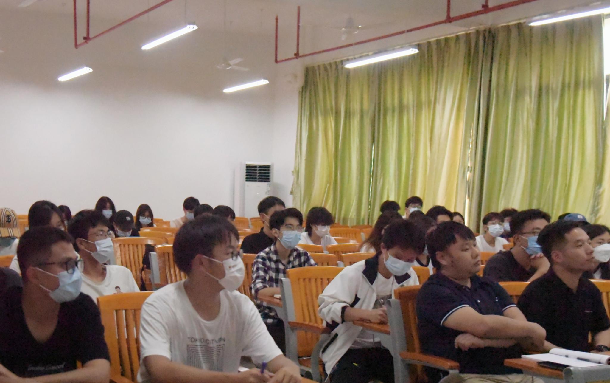 周超雄向同学们介绍了21年考研的相关情况,通过考研的具体事例向低年级同学们提出了两点建议。第一,他指出考研期间认真复习的重要性,希望准备考研的同学们以认真的态度备考,以坚韧的精神面对考试,第二,他认为同学们需要重视考研期间志愿的填报,积极选择合适的考研院校。
