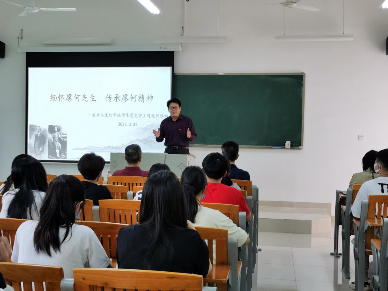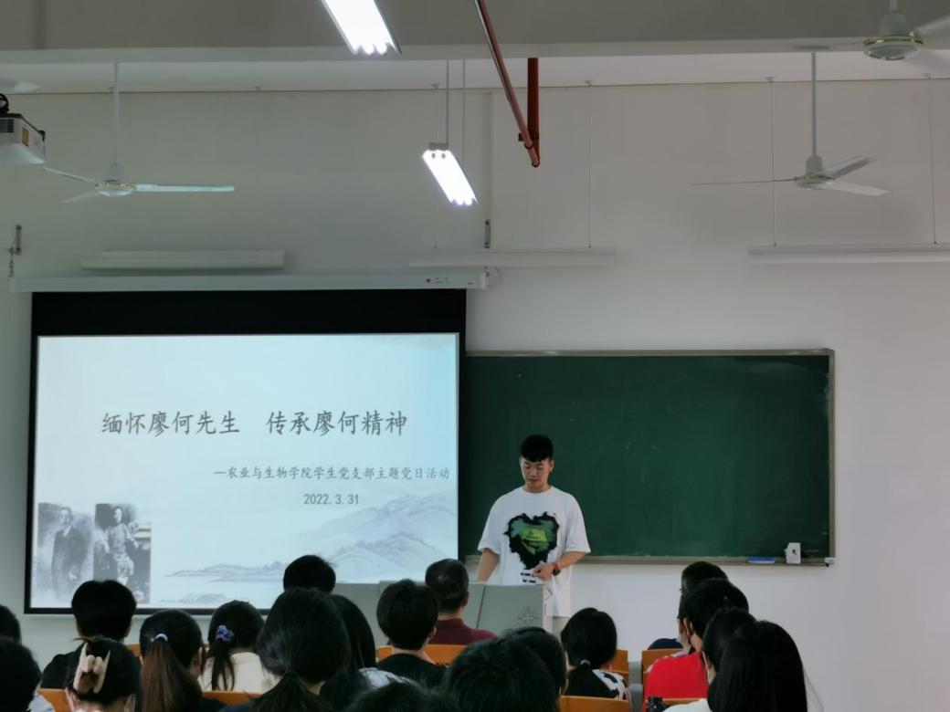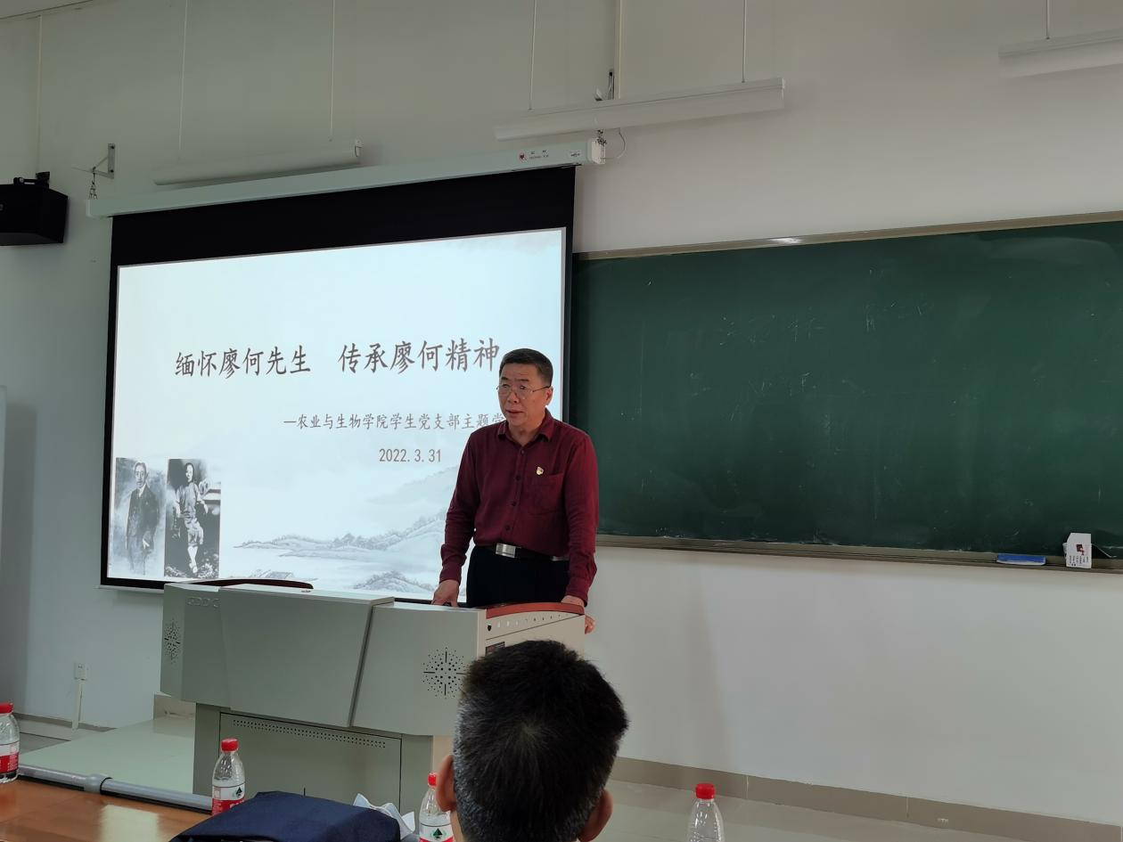 在建校九十五周年之际,为缅怀廖仲恺与何香凝先生,进一步传承廖何精神,3月31日,best365官网入口注册于生命科学大楼A座501室召开以“缅怀廖何先生,传承廖何精神”为主题的党日活动,参与本次党日活动的有公司党委委员、纪委副书记、纪检监察室主任刘兵,农业与生物公司党委书记陈丹雄,党委副书记周超雄,公司辅导员,员工党支部成员及各班优秀入党积极分子代表,会议由周超雄主持。
